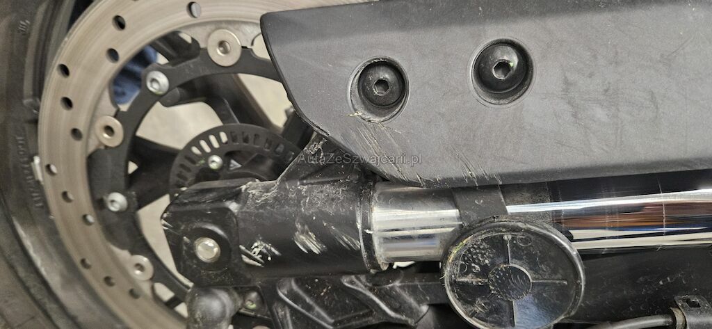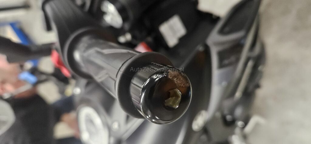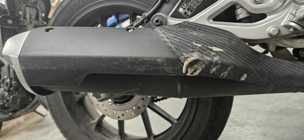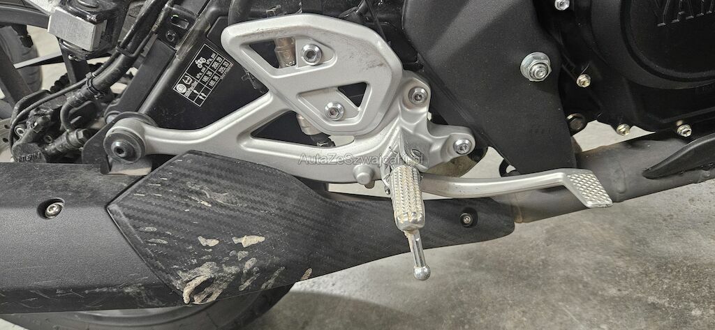 Rückspiegel re. und li., Lenkergewicht re. + li., Bremshebel VR, Kupplungshebel, Lenker, Motorverkleidung VR, Gabelholmen VR, Seitenverkleidung VR + VL, Kopfverschalung, Schutzblech vorne, Schalthebel und Fussraster, Raster HL, Blinker HL, Heck nach links verschoben, Verkleidung am Tank link, Auspuffendtopf, Fussraster VR, ...
