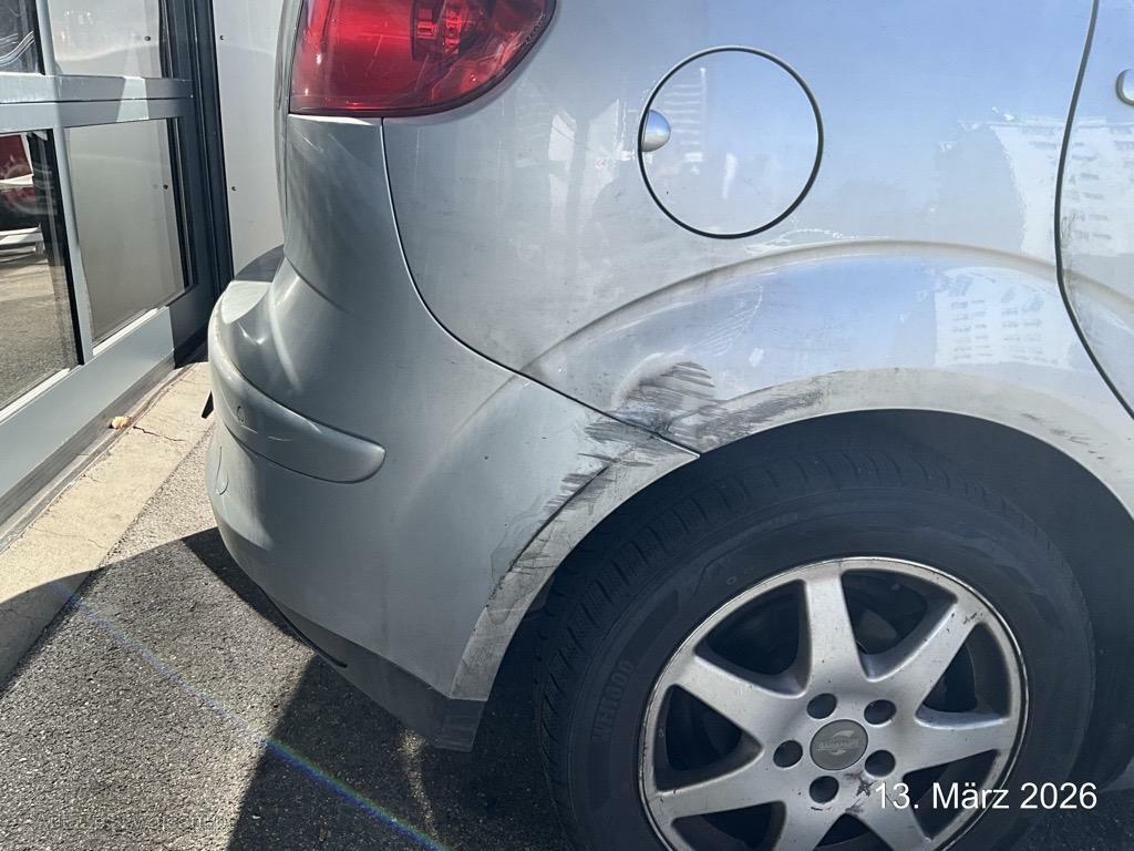| Schadensbeschreibung | Beschreibung der Schäden: Ecke vorne links eingedrückt Stossfänger, Scheinwerfer, Kotflügel Motorhaube, Frontblech defekt, Kühler ohne Wasser Vorbestandene Schäden: Vorne rechts: Stossfänger und Seitenwand hinten rechts und links eingedrückt beschädigt: Stossstange vorne, rechts unten angekratzt |