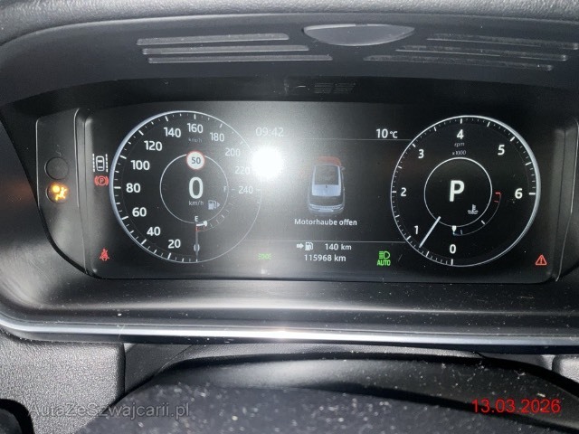 | Sonderausstattung | Off Road Paket (Adaptives Fahrwerk (Adaptive Dynamics), All Terrain Progress Control, Terrain Response 2, Verteilergetriebe zweistufig), Paket reflektierende Frontscheibe / (Abgedunkelte Seiten- und Heckscheibe, Reflektierende Frontscheibe), Dachhimmel ebony, Licht: Abblendautomatik, Keyless Entry, Lenkrad mit Schaltwippen, Panorama-Glasschiebedach mit elektrischem Sonnenrollo, Adaptiver Tempomat ACC, Vordersitze mit Massagefunktion, Surround Camera System mit Führungslinien und Anhängerassistent, Berührungsloses Öffnen der Heckklappe, Adaptive Xenon-HID-Scheinwerfer LED-Tagfahrlicht, statisches Abbiegelich inkl.Scheinwerferreinigungsanlage, Anhängevorrichtung el. abschwenkbar, 3-Zonen-Klimatisierungsautomatik, Lackierung: Premium Metallic-Lackierung, Lederlenkrad beheizbar |