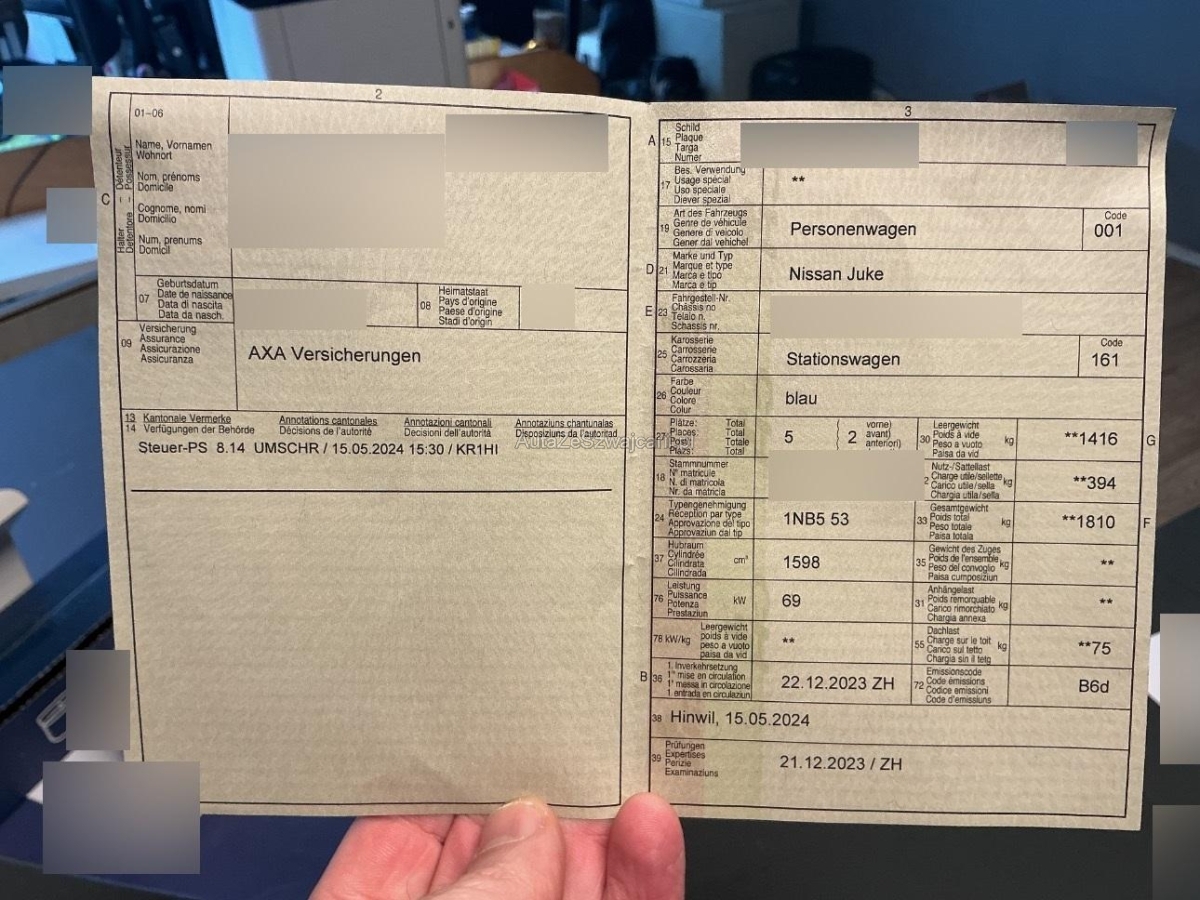 | Fahrzeugausweis | Vorhanden |