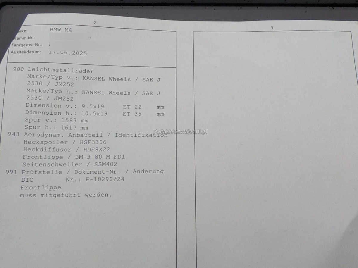 | Fahrzeugausweis | Vorhanden |