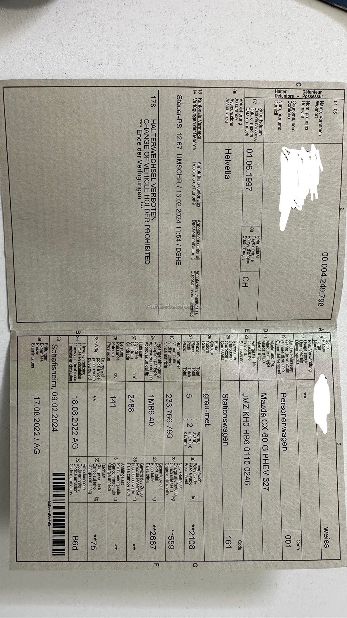 | Kommentar | Es wurde kein Werkstatttest durchgeführt. Alle Services digital vorhanden. |