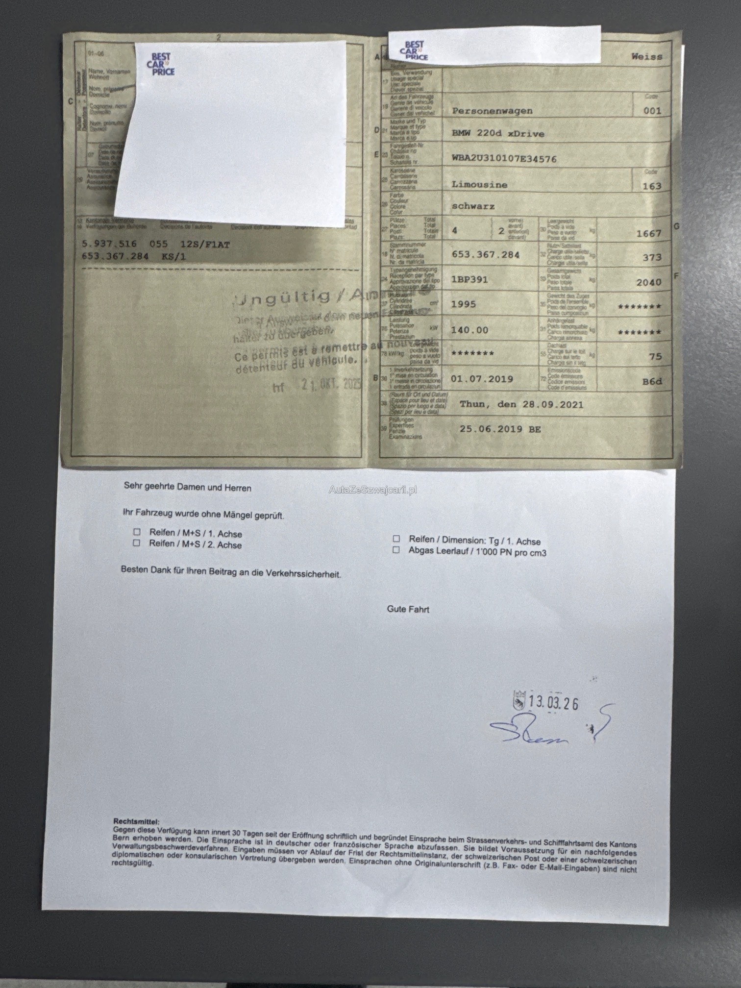 | Kommentar | Frisch ab MFK 1x Felge zu Reparieren und 1x Sommerpneu zu ersetzen |