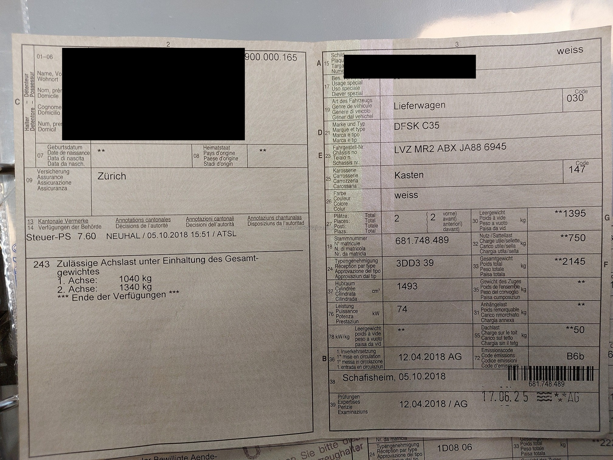 | Kommentar | - Diverse Dellen und Krazter am Fahrzeug (siehe Fotos) Das Risiko liegt somit vollumfänglich beim Käufer. Um Missverständnisse zu vermeiden kann das Fahrzeug auf Voranmeldung besichtigt & getestet werden. Wird davon bewusst kein Gebrauch gemacht, liegt die Verantwortung beim Käufer. Nach Zuschlag, keine Nachverhandlungen möglich. Ab Platz ohne Garantie, Wandelung und Minderung werden wegbedungen. Abholung vom Fahrzeug spätestens 5 Arbeitstage nach dem Zuschlag. Spätere Abholungen können abgemacht werden, werden jedoch mit Fr. 8.- / Tag in Rechnung gestellt. |