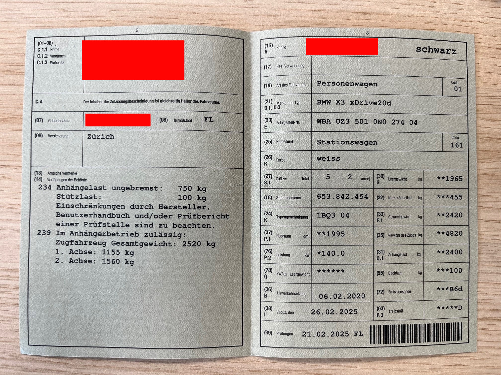 | Kommentar | BMW X3 in top Zustand: - M Sport Pack - MFK 02.2025 - letzter Service am 01.10.2025 bei 97499 - Zustand sehr gut, siehe Bilder. - Ausstattung im Wert von Über 29000.- Kundenwunsch wäre 26000.- Kein Werkstatttest durchgeführt. Für sichtbare und nicht sichtbare Mängel wird nicht gehaftet. Keine Minderung und Wandelung möglich. Keine Nachverhandlungen. Das Fahrzeug muss innerhalb von 7 Tagen nach Zuschlag abgeholt werden und bar bezahlt werden. |