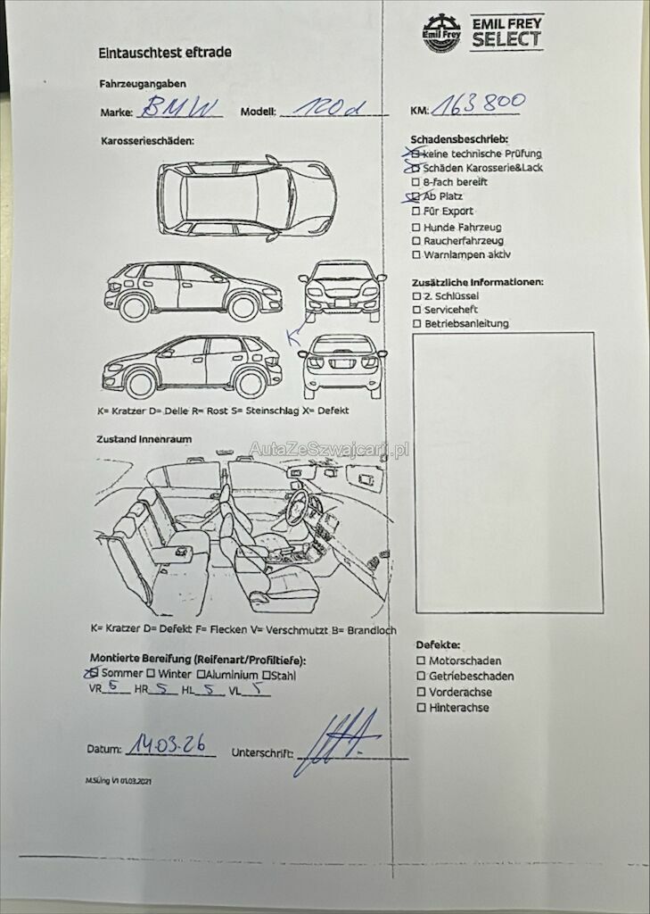 Keine technische Prüfung (Werkstatttest) vorgenommen