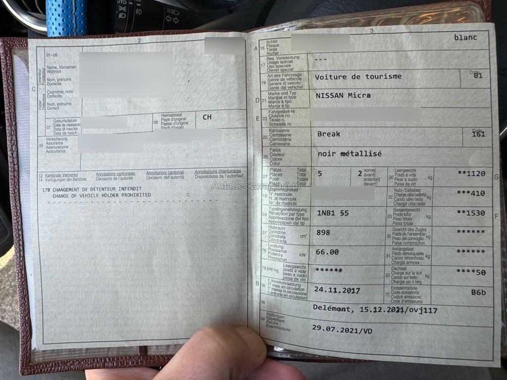 | Fahrzeugausweis | Vorhanden |