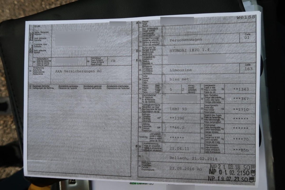 | Fahrzeugausweis | Vorhanden |