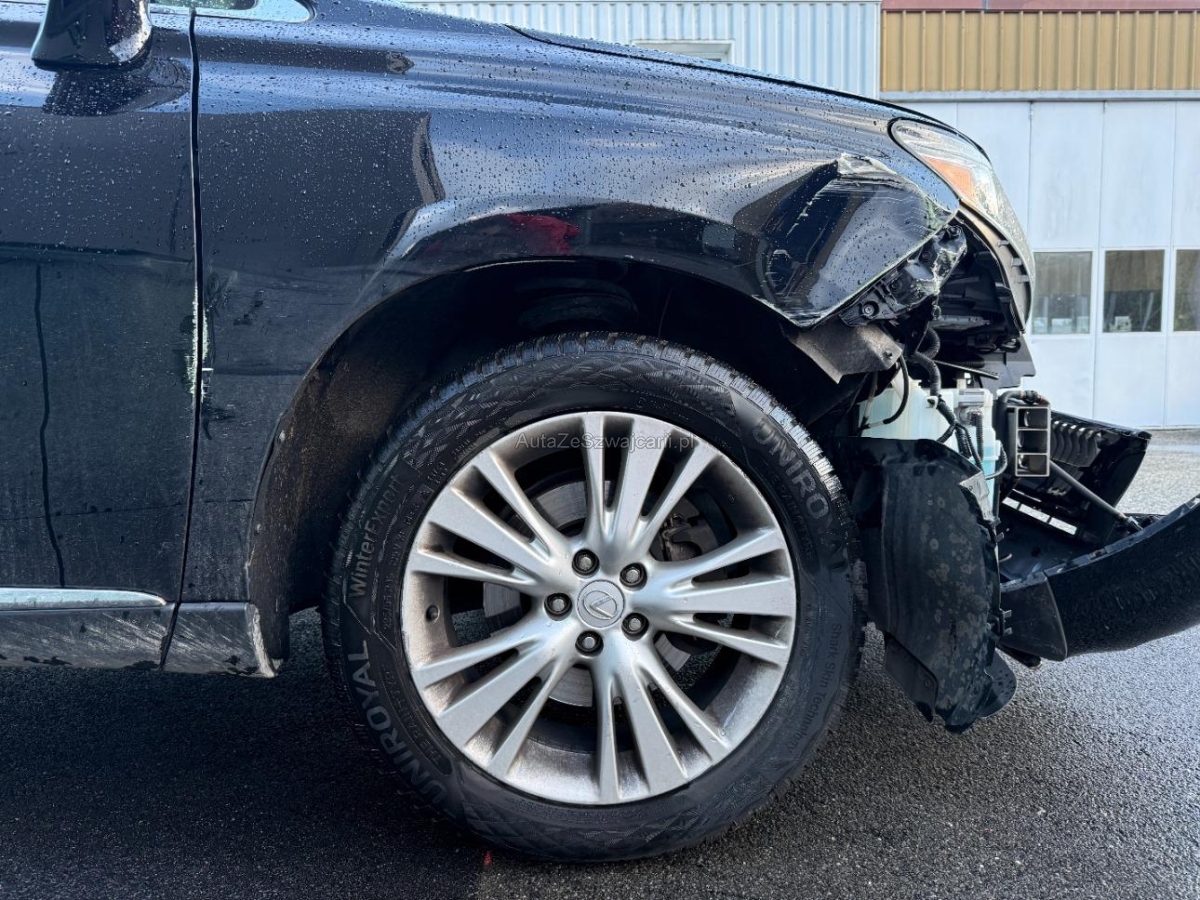 | Serienausstattung | Seitenairbags hinten, Bremsassistent (BAS), Zentralverriegelung mit Fernbedienung und automatischer Türverriegelung, Ein- und Ausstiegshilfe (einfahrbares Lenkrad mit Memory), Abgedunkelte Seiten- und Heckscheibe, Vordersitze belüftet, HDD Festplatten Navigationssystem, Media: Bluetooth-Schnittstelle für Mobiltelefon, Servolenkung geschwindigkeitsabhängig, Getriebe: Stufenloser Automat, Heckscheibenheizung, Katalysator geregelt, Vordersitze elektrisch 10 fach verstellbar mit Memoryschaltung, inkl. Lenksäule und Aussenspiegel, Multifunktionslenkrad in Leder, Licht: LED Heckleuchten, Aktivkohlefilter (Geruchsfilter), Seitenaufprall-Schutzsystem, Klimatisierungsautomatik, Lexus Card-Schlüssel, Gurtstraffer vorne und hinten, HID-Bi-Xenon-Scheinwerfer mit automatischer Höheneinstellung, Beleuchtetes Einstiegssystem mit Umfeldbeleuchtung, Park Distance Control vorne und hinten, Stossstangen und Aussenspiegel in Wagenfarbe, Aussenspiegel rechts und links beheizt, elektrisch verstell- / und einklappbar mit Memory-Funktion, Alarmanlage mit Innenraumüberwachung und Neigungssensor, Elektrische Fensterheber vorne + hinten, Lichtwarnsummer, Beide Make up-Spiegel beleuchtet, Rückfahrkamera, Licht: Nebelschlussleuchte, Highend-Surround-Audiosystem Mark Levinson mit 15 Lautsprechern und 6-DVD-Wechsler, Airbag: Seitenairbag für Fahrer und Beifahrer, Assist: Tempomat, Kofferraumfernentriegelung, Sitze: Vordersitze heizbar, Elektrische Heckklappenautomatik, Airbag: Airbag Fahrer und Beifahrer, Digital Uhr, Automatikgurt in Fondmitte, Tankdeckel-Entriegelung von innen, Luftfederung, Bordcomputer, 4 Leichtmetallfelgen 19J mit Pneu, Echtholz-Applikationen, Rücksitze längsverstellbar, USB-Anschluss, 3 Kopfstützen hinten, Airbag: Knie-Airbag für Fahrer und Beifahrer, Nebelscheinwerfer, Semi-Anilin Ledersitze, Drehzahlmesser, ISOFIX Kindersitzvorrichtung, Integriertes Fahrdynamikmanagement VDIM, Einstiegsschienen beleuchtet, LED Scheinwerfer, Sitze: Rücksitzlehne geteilt abklappbar, Allradantrieb permanent, Wegfahrsperre elektronisch, Stabilitäts- und Traktionskontrolle (VSC und TRC), Berganfahrhilfe, Garantie: 3 Jahre oder 100'000 km Gratis-Service: 3 Jahre oder 100'000 km (ab 1. Inv.), Beleuchtetes und abschliessbares Handschuhfach, Regensensor und automatisch abblendbarer Innenspiegel und Aussenspiegel, Airbag: Window-Kopfairbags, Aussentemperaturanzeige, Adaptives Kurvenlicht, Licht: Drittes Bremslicht, Tageskilometerzähler, Aux-In Anschluss, Sitze mit Schleudertrauma-Schutzsystem, Antiblockiersystem (ABS) |