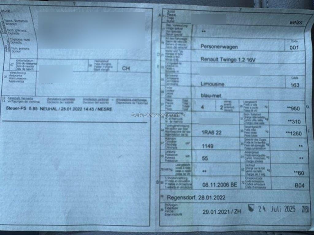 | Fahrzeugausweis | Vorhanden |