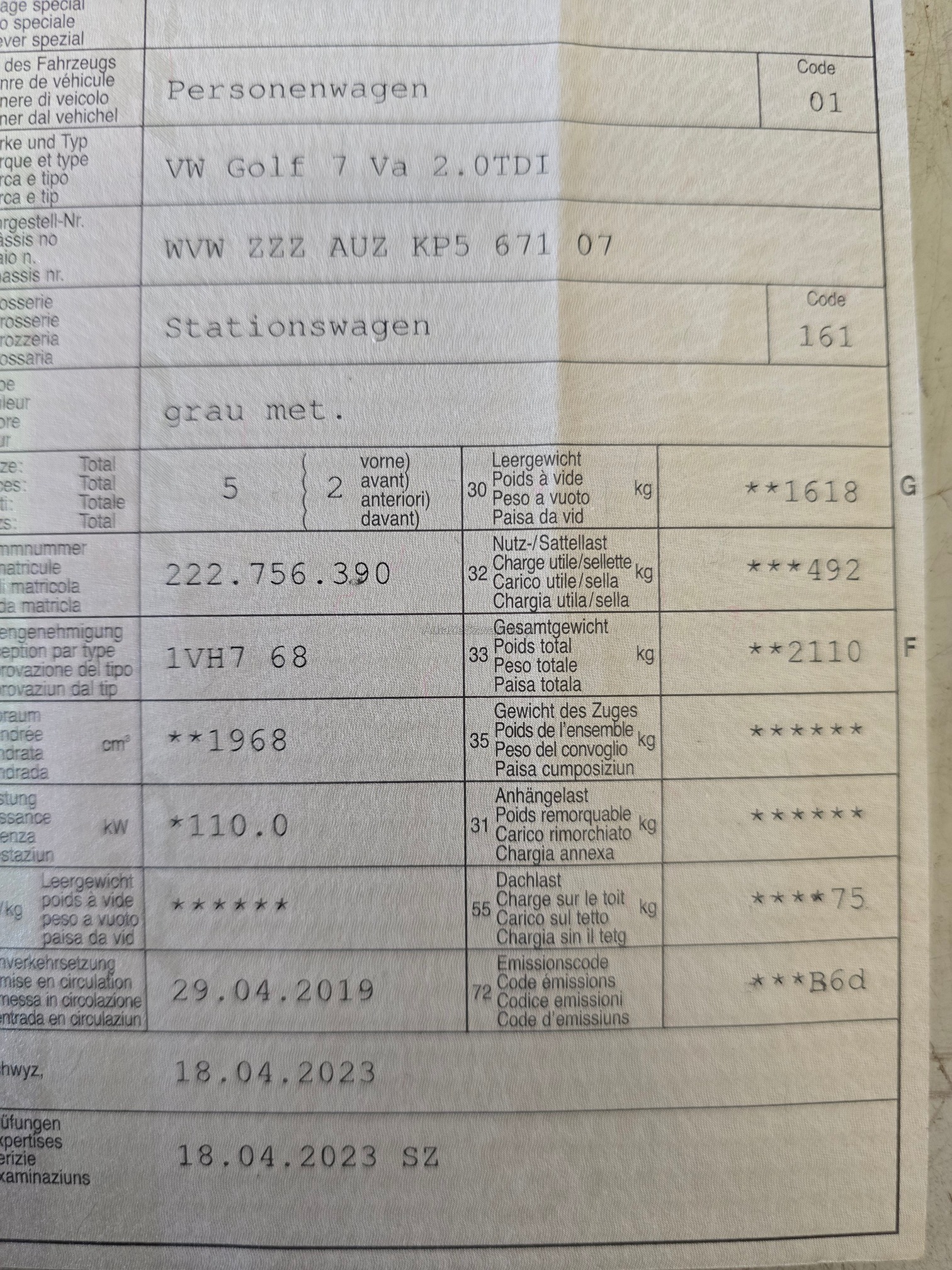 | VIN | WVWXXX |