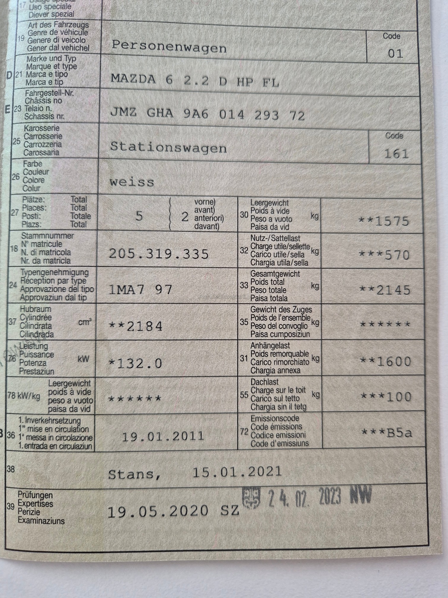 MAZDA 6 2.2 D HP FL