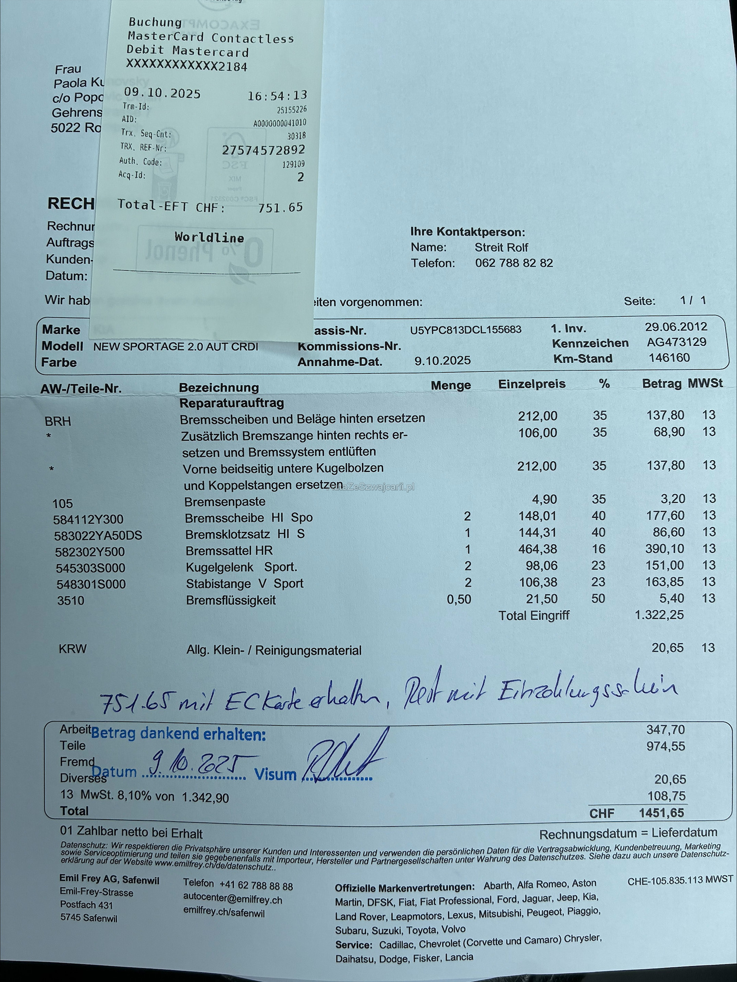 | Vordere Bremsen müssen ersetzt werden | No |