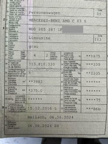| Condition_and_Equipment | Zustand Fahrzeug muss transportiert werden (Höhe und Breite beachten). Kategorie Das Fahrzeug wird vom Besitzer noch benutzt. --- Links Linke Seite beschädigt. Rechts Rechte Seite beschädigt. Sonstige Schäden Div.Carrosserie Teile sind leicht beschädigt. --- Serienaustattung Airbag Fahrer und Beifahrerseite Elektrische Fensterheber Aussenspiegel elektrisch verstellbar und heizbar Wärmedämmendes Glas ABS Antiblockiersystem Seitenairbag Fahrer und Beifahrerseite ESP Elektronisches Stabilitätsprogramm Lenkrad verstellbar Windowbag Multifunktionslenkrad Scheibenwischer mit Regensensor Reifendruck-Kontrollsystem RDK Zentralverriegelung mit Innenschalter Isofix-Kindersitzbefestigung Klimaautomat Thermatic Pack Innenraum-Licht Dachhimmel schwarz Knieairbag Fahrer Tempomat inklusiv Speedtronic Leichtmetallräder 19" AMG Doppelspeichen Instrumententafel in Ledernachbildung Artico AMG Performance Lenkrad Rücksitze geteilt umklappbar 40/20/40 Zierteile in Aluminium Start + Stopp Funktion Treibstofftank 66 Liter Keine Gewähr auf die Angaben der Serienausstattungen Radio/ Audio 20 LED-Scheinwerfer High Performance Sitzbezüge Mikrofaser/ Ledernachbildung Artico Sonderausstattung Ambientebeleuchtung Diebstahlwarnanlage/ Innenenraum-Überw./ Abschleppschutz Wärmedämmendes Glas dunkel getönt Pre Safe System Panorama-Schiebedach Keramik Bremsanlage Pack AMG Carbon Exterieur Aktiver Parkassistent mit Parktronic Reifenreparaturkit/ Tirefit Pack Spiegel Pack AMG Driver Komfortschliessung Kofferraum Pack Fahrassistenz Plus Pack AMG Carbon Exterieur 2 AMG Performance Abgasanlage Burmester Surround-Soundsystem Keyless-Go Start Funktion Keyless-Go/ Zugangs und Fahrberechtigungssystem Pack Keyless-Go Komfort Remote Online LED Intelligent Light System Adaptiver Fernlichtassistent Plus Auto-Telefonie |