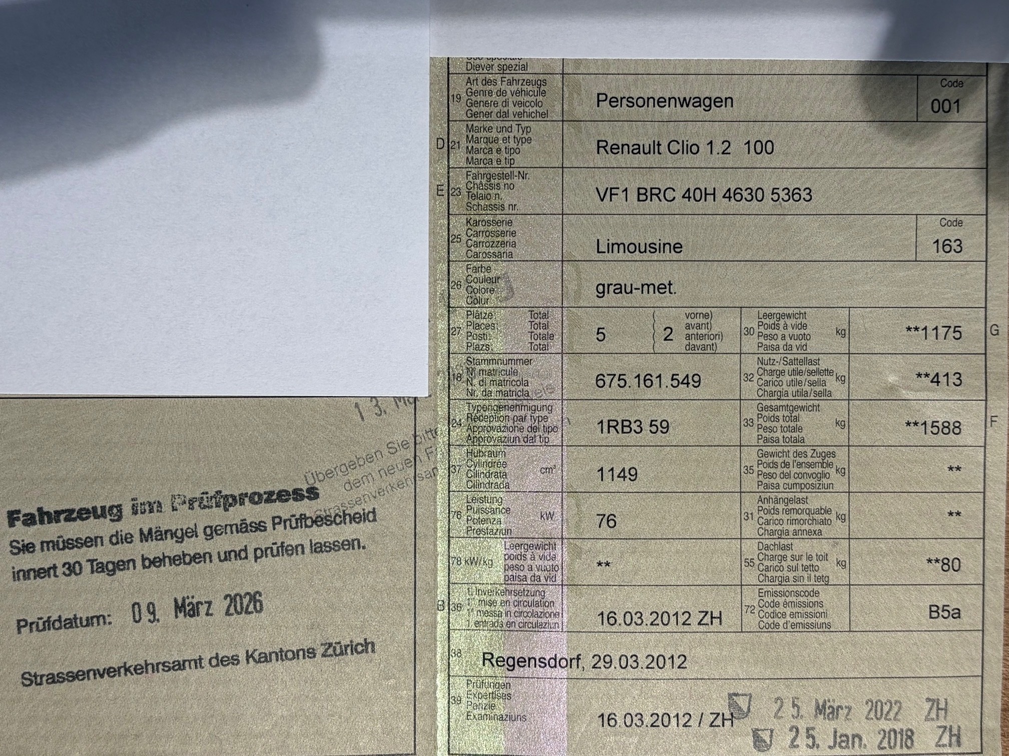 | Kommentar | Bei der MFK Mängel beanstandet, Kupplung geht noch aber sehr spät, leichter Hagel. Motor läuft normal Getriebe ist auch gut. Am Fahrzeug wurde kein Werkstatttest gemacht (Für sichtbare oder nicht sichtbare Mängel wird nicht gehaftet). Wir testen und prüfen nicht alle Funktionen vom Fahrzeug. Das Risiko liegt somit vollumfänglich beim Käufer. Nach erhalt des Zuschlags, gibt es keine Nachverhandlung, auch wenn nicht deklarierte Mängel zum Vorschein kommen. Ab Platz ohne Garantie oder Gewährleistung, Wandelung und Minderung werden wegbedungen. |