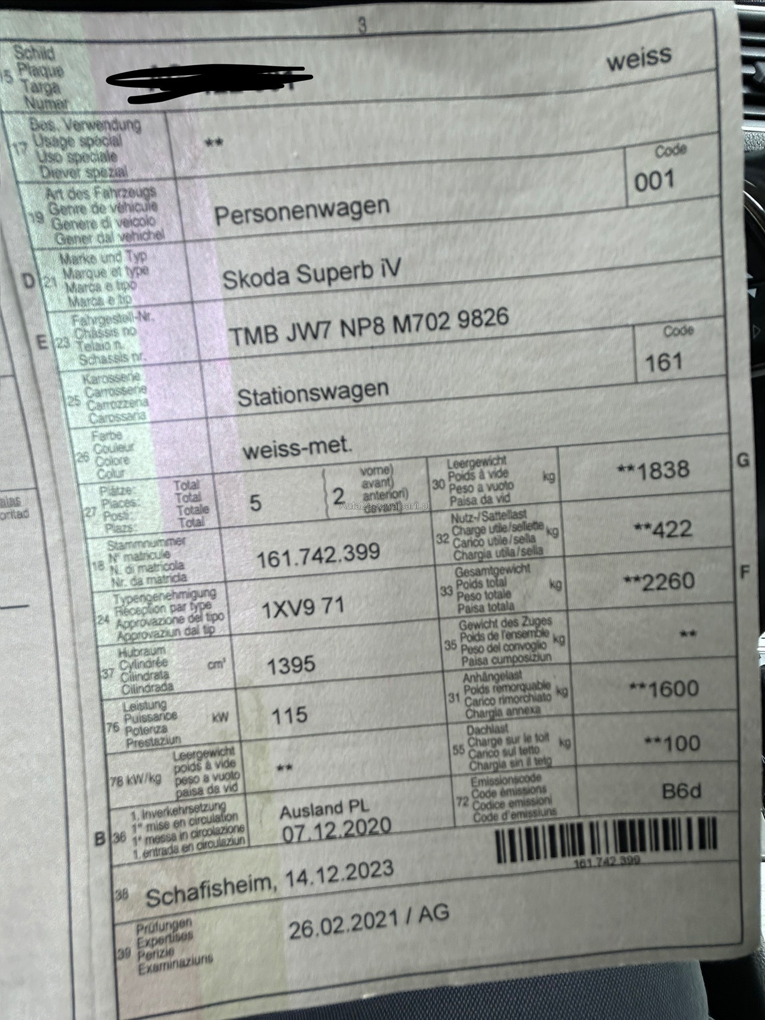 | Kommentar | Es wurde kein Werkstatt-Test durchgeführt. Fahrzeug wird aber frisch ab Service geliefert. |
