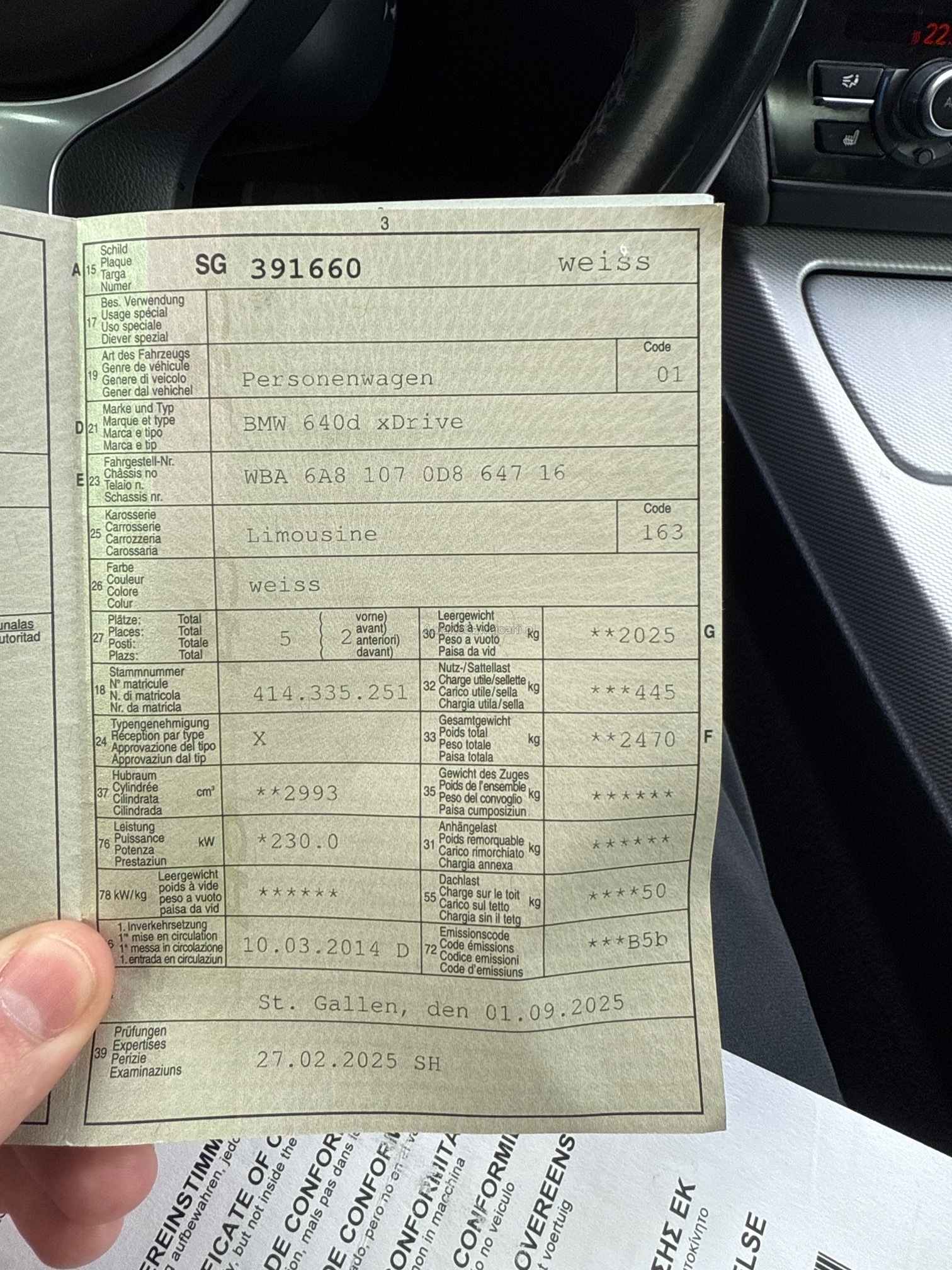 | Kommentar | BMW 640d X-Drive Mängel wie auf fotos weitere Mängel nicht ausgeschlossen das risiko liegt somit vollumfänglich beim Käufer, keine Nachverhandlungen keine Garantie. Laut aussage vom Mechaniker ist für das Airbag problem die Lenkrad Kassette zu ersetzen. Die Meldung Antrieb kommt sporadisch und verschwindet nach 1-2 minuten Fahrtzeit. |