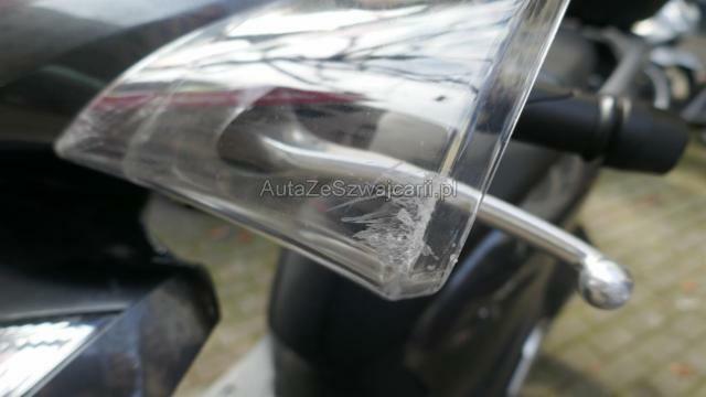 | Condition_and_Equipment | Schlüssel Nur ein Schlüssel vorhanden. Zweirad-Kategorie Roller Weitere wichtige Hinweise Nur ein Schlüssel, kein Serviceheft oder Fahrzeugdokument vorhanden.Keine Garantie. --- Links Linke Seite beschädigt. Ist auf die linke Seite gefallen. Verschalung oben links verkratzt. Verschalung unten links verkratzt. Verschalung hinten links verkratzt. Rechts Rechte Seite beschädigt. Verschalung oben rechts verkratzt. Verschalung oben rechts gebrochen. Verschalung unten rechts verkratzt. Front Schutzblech vorne defekt. Gabel Risiko. Lenker verbogen. Heck Topcase defekt. Auspufftopf nur verkratzt. Weitere Beschädigungen Seitenaufprall rechts und Sturz links: Verkleidung vorne rechts, Unterteil rechts, Fussstufen, Fusskeil, Auspuffschutz, Halter rechts, Lenkerverkleidungen, Lenkerende rechts, Hebel rechts, Seitenspiegel rechts zerkratzt, beschädigt, gebrochen. Kotflügel vorne, Windschutzscheibe, Handschutz links, Hebel links, Lenkerspitze links, Lenker, Frontverkleidung links, Krücken, silber Verkleidung, Topcase zerkratzt, gebrochen, beschädigt. Gefahr an Gabel und Gabel-T-Stück. --- Ausstattung Leichtmetall-Felgen Metallic-Lackierung |