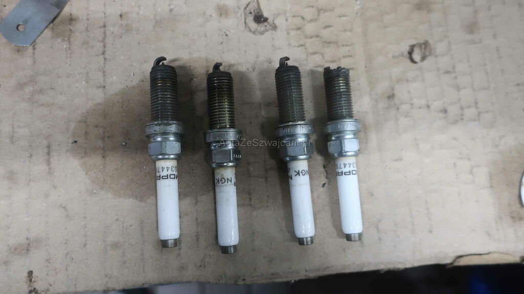 La distribution est décalée. Il n'y a plus ou peu de compression sur les cylindres 1, 2 et 4. La bougie du cylindre 2 a explosé et de la limaille est visible dans ce cylindre. Il y a des marques de soupapes sur les pistons 1 et 4.