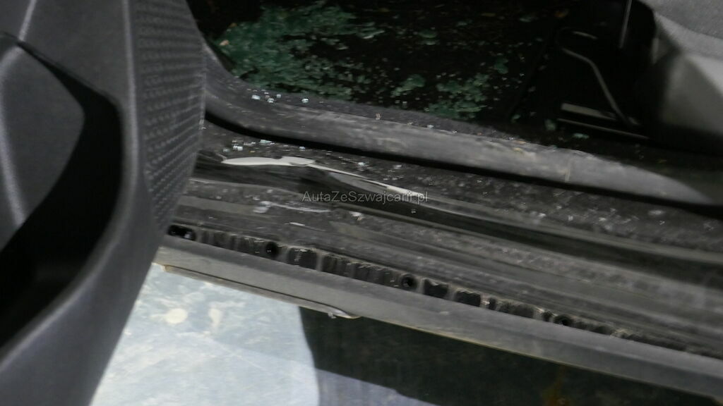 Choc latéral gauche : ailes avant et arrière gauche, portes avant et arrière gauche, bas de caisse gauche, garniture de bas de caisse gauche et moulure d'élargisseur d'aile arrière gauche, support de pavillon gauche, enfoncés, déformés, éraflés, contraints. Vitre de porte avant gauche brisée. Lèche vitre et garniture de porte avant gauche endommagés. Risque sur mécanisme de lève vitre avant gauche.
