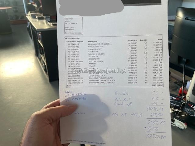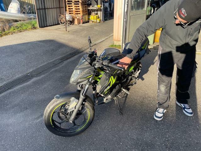 | Condition_and_Equipment | Schlüssel Nur ein Schlüssel vorhanden. Auspufftopf Auspufftopf ist nicht original. Zweirad-Kategorie Motorrad --- Links Linke Seite beschädigt. Verschalung oben links verkratzt. Verschalung oben links gebrochen. Verschalung unten links verkratzt. Verschalung unten links gebrochen. Verschalung hinten links verkratzt. Verschalung hinten links gebrochen. Rechts Rechte Seite beschädigt. Verschalung oben rechts verkratzt. Verschalung oben rechts gebrochen. Verschalung unten rechts verkratzt. Verschalung unten rechts gebrochen. Verschalung hinten rechts verkratzt. Verschalung hinten rechts gebrochen. Front Gabel Risiko. Lenker verbogen. Rahmen Rahmen nur verkratzt. Motor Risiko Motor. Kühler ist eingedrückt. Sonstige Schäden Div. Teile sind leicht beschädigt. |