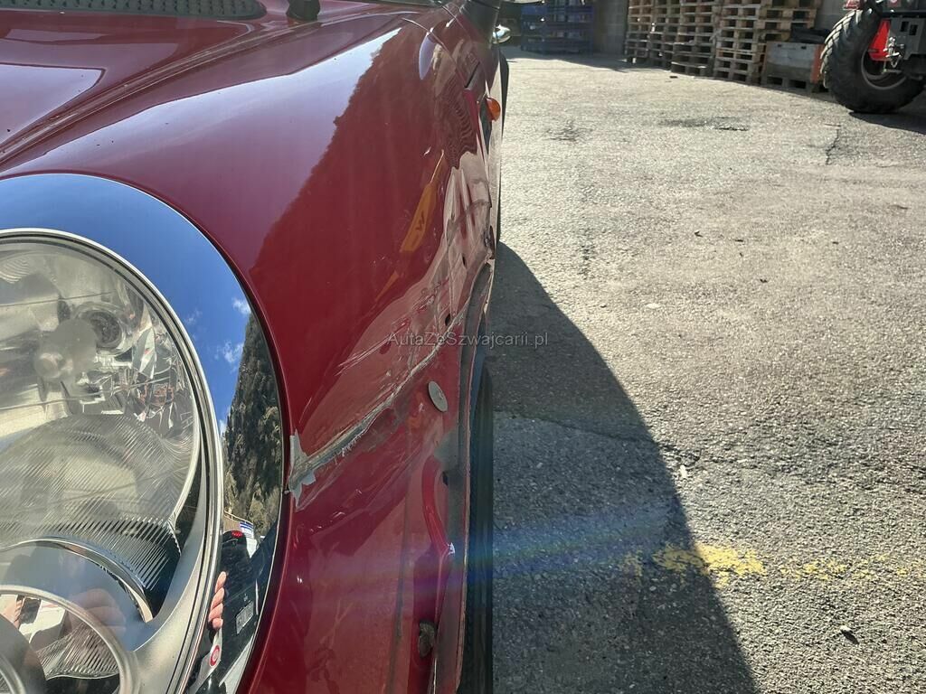 Capot et aile avant fortement enfoncés.