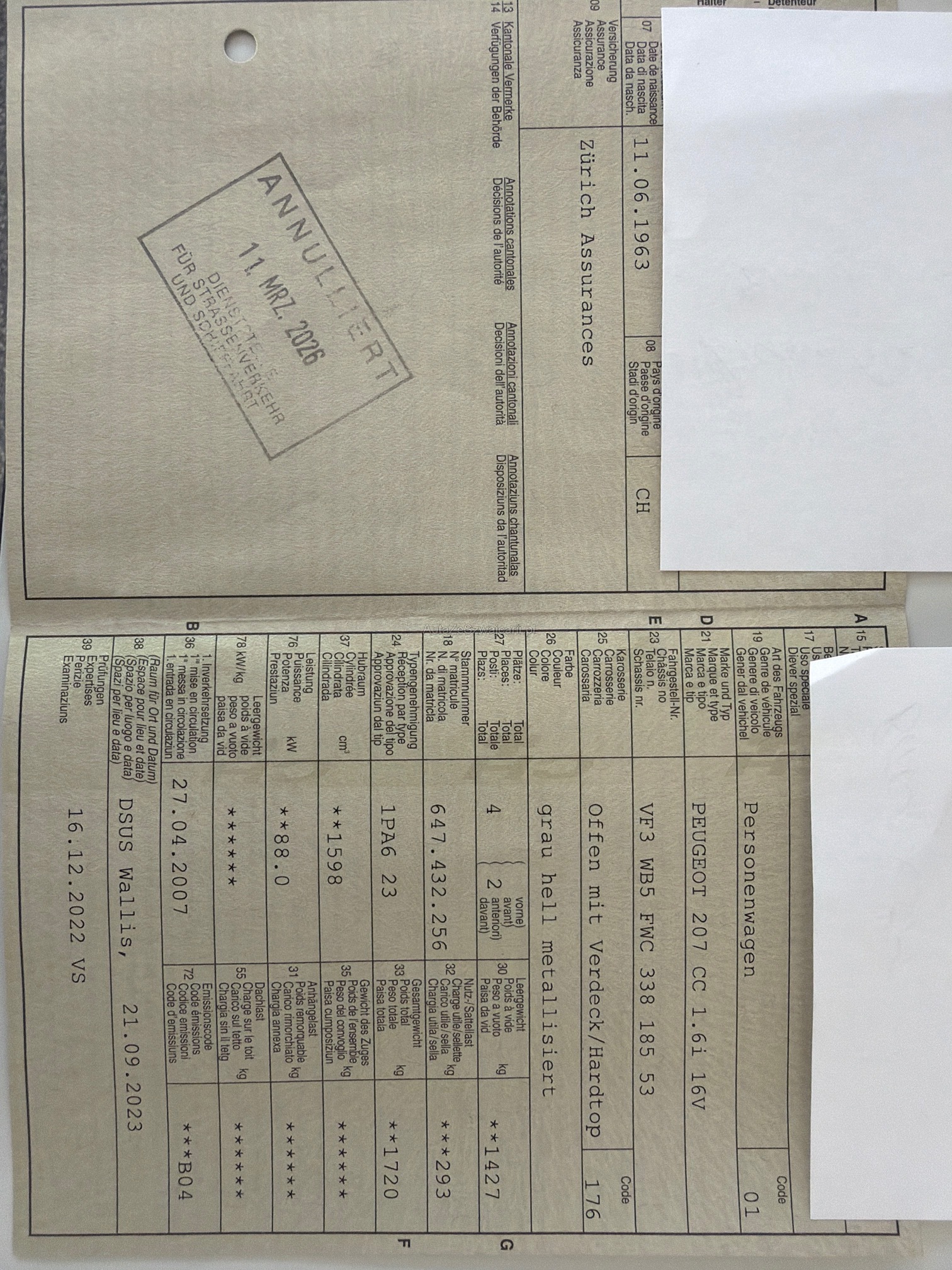 | Kommentar | Das Fahrzeug ist technisch und optisch grundsätzlich dem Alter und km-Stand entsprechend in einem korrekten Occasionszustand. Es wurde kein detaillierter Werkstatttest durchgeführt. Allfällige Lackschäden sind auf den Photos ersichtlich. Fahrzeug ruckelt. Vermutlich Kerzen/Zündspulen zu ersetzen (-> Motorlampe brennt). 4 Sommerräder zusätzlich vorhanden (Original; siehe Photos). Jede Gewährleistung wird - soweit nach Gesetz möglich - wegbedungen. Insbesondere sind Wandelung und Minderung ausgeschlossen. (Verkauf ab Platz ohne Garantie!) Der Käufer bestätigt mit seinem Gebot, dieses anzuerkennen und verpflichtet sich, das ersteigerte Fahrzeug umgehend nach vorheriger Bezahlung abzuholen. Der Preis ist fix und nicht mehr verhandelbar. |
