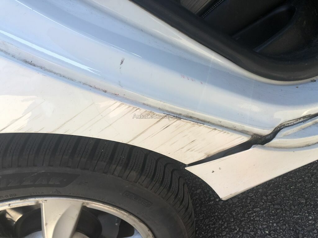 Danno da collisione ant. dx, deformato parafango ant. dx, porta ant. dx e sottoporta dx con rivestimento sottoporta lacerato con giroruota.