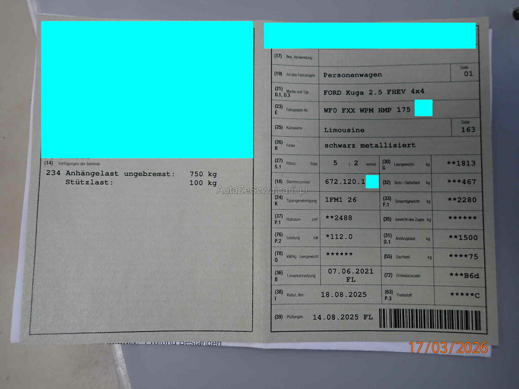 | Typ | KUGA 2.5 FHEV ST-LINEX 4W |