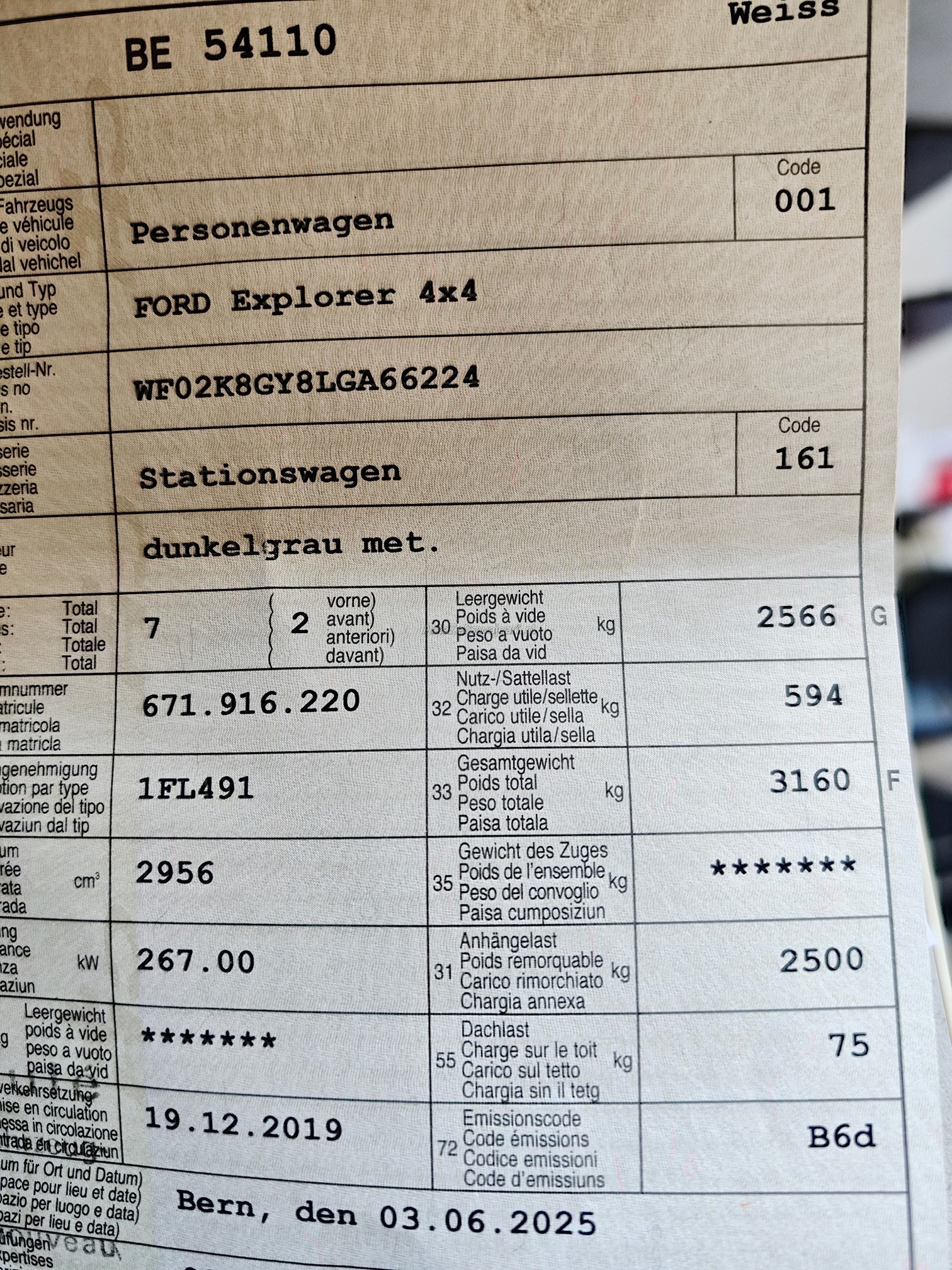 | Kommentar | Bremsen vorne und hinten 6mm 2 Reifen tu ersetzen 2 haben noch 5.5mm Kleinere Kratzer vorhanden, siehe Foto Kein Werkstatt Test durchgefürt. Verkauf ab Platz |
