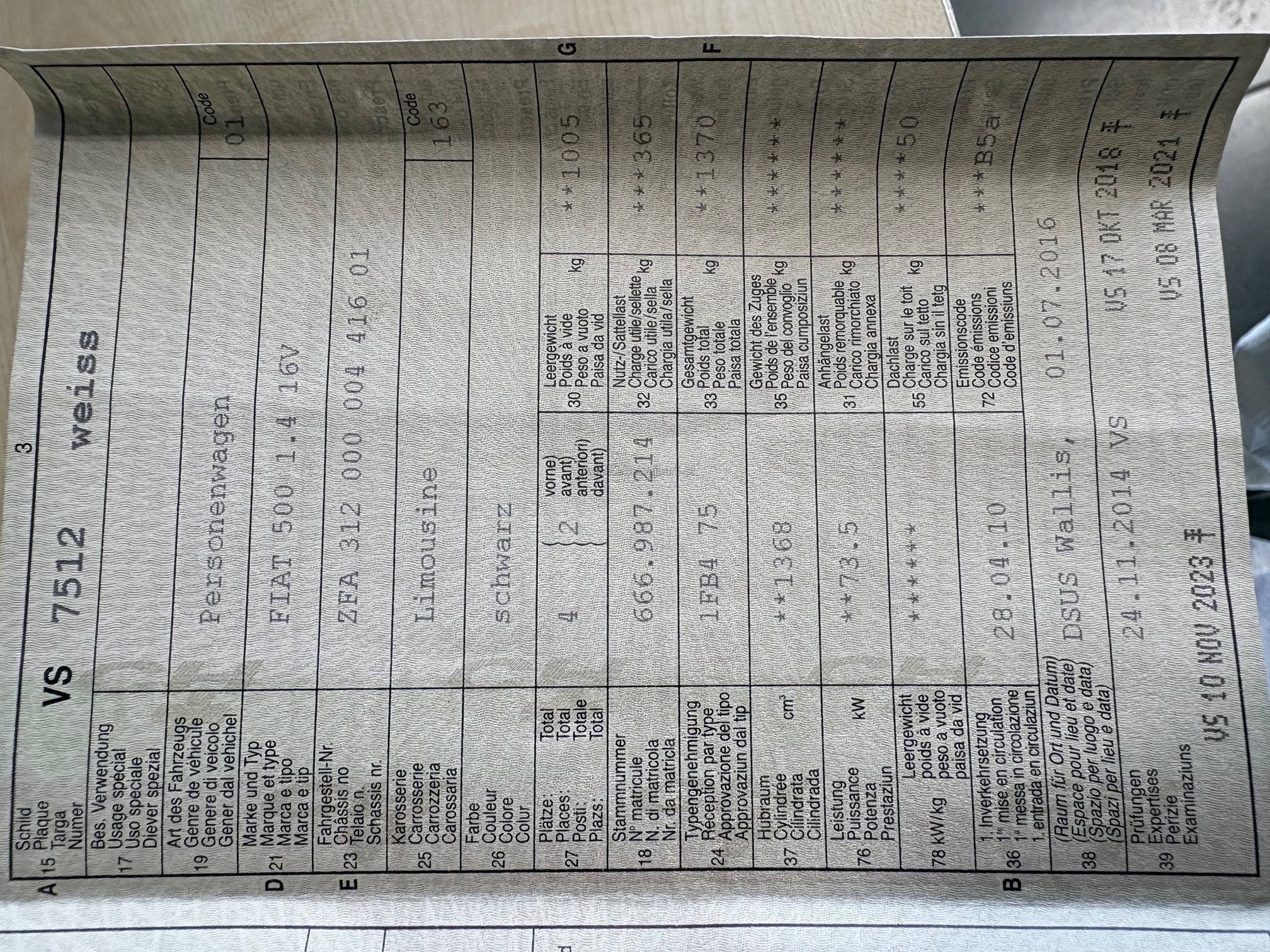 | Kommentar | Keine Werkstattkontrolle gemacht!! verkauf ab Platz. |