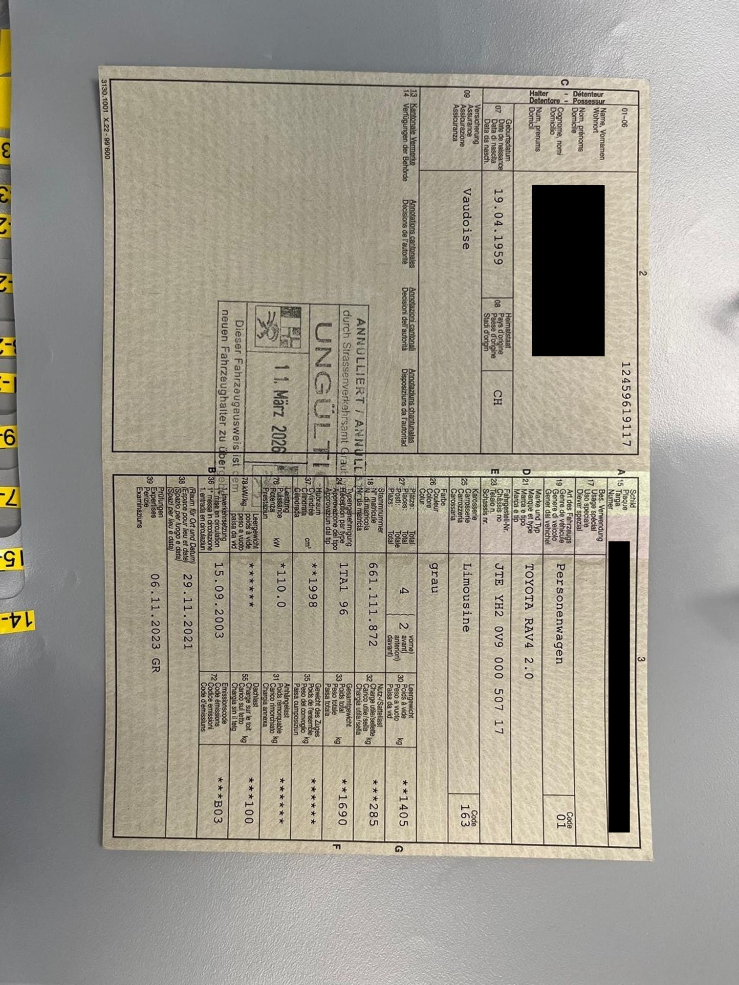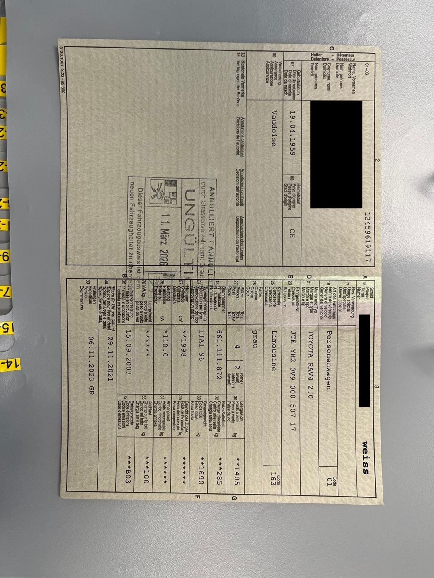 | Kommentar | Toyota Rav 4 Fahrzeug hat Rost (keine Durchrostung) siehe Bilder. Service fällig Sommer und Winterreifen mit Felgen Kraftstofftank 2021 ersetzt HB Seile +Backen 2023 ersetzt Bremsen und Scheiben VA 2025 ersetzt Am Fahrzeug wurde kein Werkstatttest gemacht (Für sichtbare oder nicht sichtbare Mängel wird nicht gehaftet). Wir testen & kontrollieren nicht alle Funktionen vom Fahrzeug. Das Risiko liegt somit vollumfänglich beim Käufer. Nachdem der Höchstbietende den Zuschlag erhalten hat, gibt es keine Nachverhandlung, auch wenn nicht deklarierte Mängel zum Vorschein kommen sollten. Ab Platz ohne Garantie, Wandelung und Minderung werden wegbedungen. Fahrzeug muss innert 5 Tagen abgeholt werden, sonst fallen Standgebühren an. |