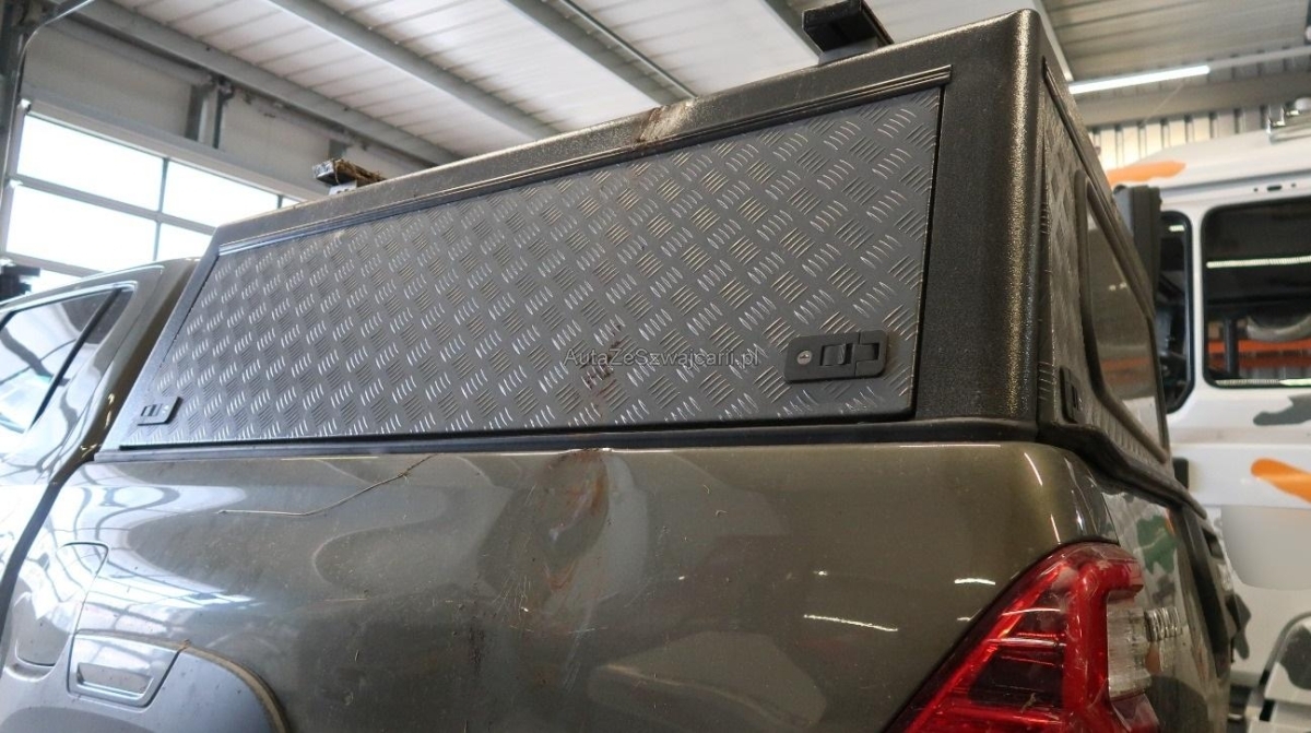 | Serienausstattung | Lenkrad: Lenkrad manuell höhenverstellbar und längsverstellbar, Fahrwerk: Komfortfahrwerk, Räder: Reserverad, Cupholder vorne, Airbag: Window-Kopfairbag für Fahrer und Beifahrer, Assist: Einparksystem vorne und hinten, Airbag: Seitenairbag für Fahrer und Beifahrer, Lenkrad: Lenkradfernbedienung für Radio (Bluetooth), Media: Connected / Android Auto / Apple CarPlay, Ladefläche mit Schutzrahmen zur Rückseite der Fahrerkabine, Unterfahrschutz, Kotschutzlappen vorne und hinten, Wegfahrsperre elektronisch, Klima: Elektronische 2-Zonen-Klimaautomatik, Dachhimmel schwarz, Aussenspiegel in Chrom, Laderaumauskleidung tief, Kunststoff schwarz, Garantie: Toyota Assistance 3 Jahre / Kilometer Unbegrenzt, Heckscheibenheizung, Türgriffe aussen in schwarz, Steckdose 220V, Airbag: Airbag Fahrer und Beifahrer, Media: JBL-Soundsystem mit 9 Lautsprechern, Elektronisches Stabilitäts-Programm (VSC/VDC), Assist: Pre Collision System (PCS) mit Fussgänger- und Fahrraderkennung, Lenkrad: Lenkrad und Schalthebelgriff in Leder, Licht: Abblendlichtausschaltverzögerung 'Follow me home', Limited Slip Differential (LSD) hinten, Kopfstützen vorne höhenverstellbar, Licht: Nebelscheinwerfer, Polster: Ledersitze perforiert, Sitze: Vordersitze heizbar, Innenspiegel abblendbar, Getriebe: 6-Stufen-Automat, Smart Entry-/Start-System, Licht: LED Scheinwerfer mit Leuchtweitenregulierung, Aussenspiegel rechts und links beheizt, elektrisch verstell- / und einklappbar, Airbag: Knie-Airbag für Fahrer, Elektrische Fensterheber vorne mit Komfortbetätigung und Einklemmschutz, Drehzahlmesser, Sitze: Kindersitzerkennung im Beifahrersitz, Assist: Berganfahrhilfe (Hill Assist Control - HAC), Sonnenblenden auf Fahrer- und Beifahrerseite, Steckdose 12V, ISOFIX-Befestigungspunkte für Kindersitz an den äusseren Rücksitzen, Trittbretter schwarz, Licht: LED-Tagfahrlicht, Frontgrill Umrandung in Chrom, Höhenverstellbare Gurten vorne, Media: Toyota Touch 8", Kotflügelverbreiterung, Stossstange vorne in Wagenfarbe, Servolenkung, Handschuhfach, Fahrwerk: Allradantrieb elektrisch zuschaltbar mit Differenzialsperre hinten und Geländeuntersetzung, Leuchtweitenregulierung von innen, Scheiben abgedunkelt, Toyota Garantie: 3 Jahre oder 100'000 km (ab 1. Inv.), Innenraumbeleuchtung, Sitze: Fahrersitz elektrisch verstellbar, Assist: 360 - Panoramakamera, Räder: 18" Leichtmetallfelgen 265/60/R18, Alarmanlage, Bodenteppiche, Assist: Adaptiver Tempomat (ACC), Zentralverriegelung mit Fernbedienung und Klappschlüssel, Assist: Spurwechselassistent, Ladefläche mit Befestigungshaken, aussenliegend, 12-Volt-Steckdose vorne, Gurtstraffer vorne, Lackierung: Uni-Lackierung, Scheibenwaschdüsen vorne beheizt, Antiblockiersystem (ABS), Licht: Nebelschlussleuchte, Partikelfilter und Oxydationskatalysator, Kühlergrill schwarz matt, Media: Navigationssystem Toyota Touch 2 Go inkl. 3 Jahre gratis Kartenupdate, Assist: Verkehrsschild-Erkennungssystem, Assist: Anhänger Stabilisierungkontrolle TSA |