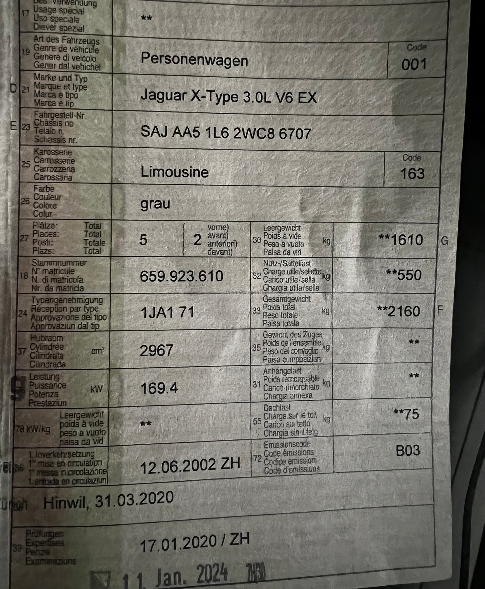 | VIN | SAJXXX |