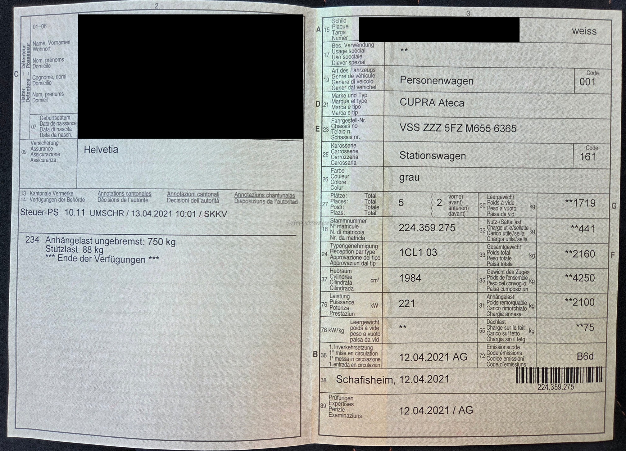 | Kommentar | Anhängerkupplung El. Ausklappbar!! Kein Werkstatttest ausgeführt, keine Mängel bekannt, Lackschäden siehe Fotos Das Risiko liegt somit vollumfänglich beim Käufer. Um Missverständnisse zu vermeiden kann das Fahrzeug auf Voranmeldung besichtigt & getestet werden. Wird davon bewusst kein Gebrauch gemacht, liegt die Verantwortung beim Käufer. Nach Zuschlag, keine Nachverhandlungen möglich. Ab Platz ohne Garantie, Wandelung und Minderung werden wegbedungen. Abholung vom Fahrzeug spätestens 5 Arbeitstage nach dem Zuschlag. Spätere Abholungen können abgemacht werden, werden jedoch mit Fr. 8.- / Tag in Rechnung gestellt. |