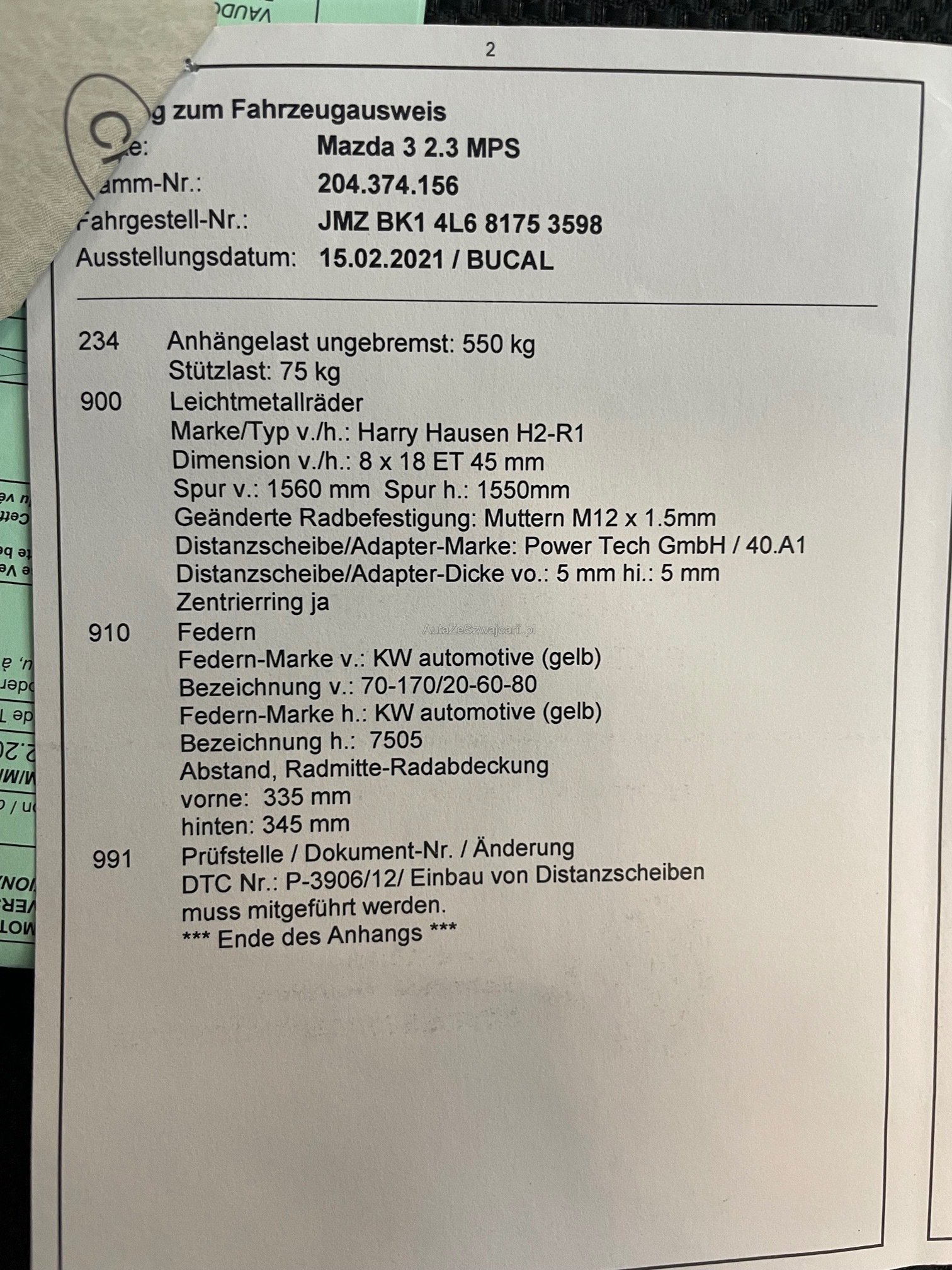 | Kommentar | KW Gewindefahrwerk Distanzscheiben Felgen Auspuff Anhängerkupplung alles Eingetragen Fzg.hat Hagelschaden Weitere Mängel möglich, kein Werkstatttest durchgeführt. Ab Platz |