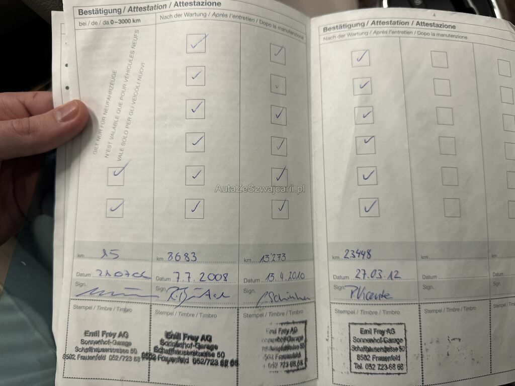 | Information | Keine technische Prüfung (Werkstatttest) vorgenommen Diverse Schäden an Karosserie/Lack. Fahrzeug ab Platz, ohne Garantie und Aufbereitung. DPF/FAP Filter nicht kontrolliert Keine Gewähr auf die Angaben der Sonder- und Serienausstattung / keine mechanische Prüfung. Fahrzeug wurde unzerlegt expertisiert / keine Haftung für allfällige, nach Demontage bekanntwerdenden Mängel. Fahrzeugbereifung und Ausstattung gemäss Fotos / Fahrzeugkauf auf eigenes Risiko ab Platz ohne Nachwährschaft. - Div. Kratzer und Dellen - Letzter Service: 2008 |