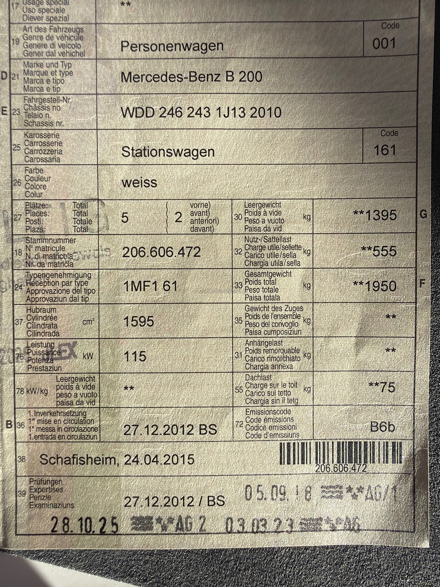 | Kommentar | Auto aus 1. Hand, Werkstatttest gemacht, keine technischen Mängel Zustand gemäss Foto, Ohne Garantie und Nachwährschaft |