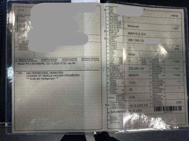 | Condition_and_Equipment | Zustand Fahrzeug muss transportiert werden (Höhe und Breite beachten). Fahrzeug ist rollbar. Schlüssel Nur ein Schlüssel vorhanden. Zweirad-Kategorie Motorrad Weitere wichtige Hinweise Das Fahrzeug befindet sich grenznah zum Kanton Aargau auf deutschem Boden. Es bleibt eingelöst, damit der Zoll problemlos in die Schweiz überquert werden kann. Sobald sich das Fahrzeug auf Schweizer Boden befindet, muss es durch den Aufkäufer annulliert werden. --- Links Linke Seite beschädigt. Rechts Rechte Seite beschädigt. Front Schutzblech vorne defekt. Vorderrad beschädigt. Gabel beschädigt. Lenker verbogen. Heck Heckrahmen Risiko. Sonstige Schäden Div. Teile sind leicht beschädigt. Weitere Beschädigungen Risiko Hauptrahmen --- Sonderausstattung Griffheizung Reifen-Druck-Control Schaltassistent DTC Hill Start Control Headlight Pro Fahrmodi Pro Digital Display |