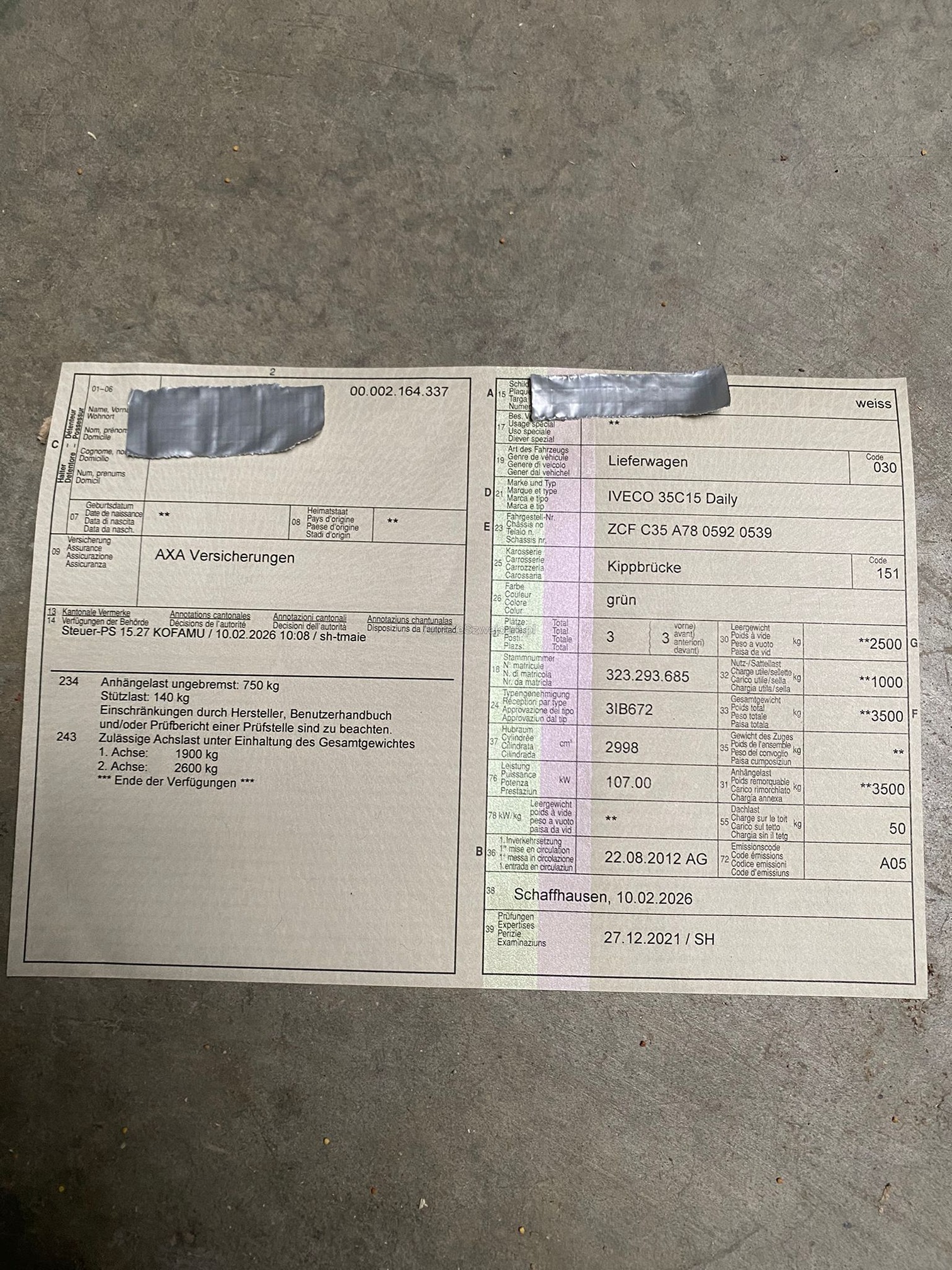 | Kommentar | Frontscheibe und Bremsscheiben und Bremsklötze hinten wurden am 18.03.2026 ersetzt. Es wurde kein Werkstatttest durchgeführt. Für sichtbare, sowie nicht sichtbare Mängel wird keinerlei Haftung übernommen. Der Verkauf erfolgt ab Platz, ohne Garantie oder Gewährleistung. Jegliche Ansprüche auf Wandelung oder Minderung sind ausgeschlossen. Nach Zuschlag bzw. Kaufabschluss sind Nachverhandlungen ausgeschlossen. |