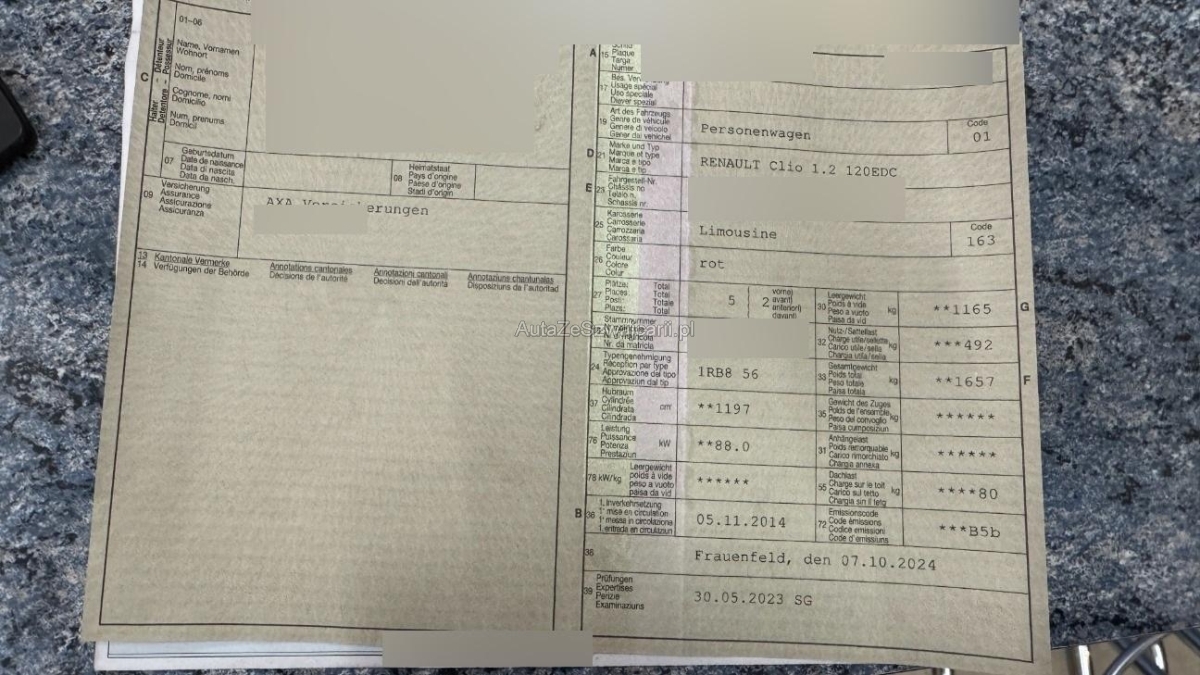 | Fahrzeugausweis | Vorhanden |