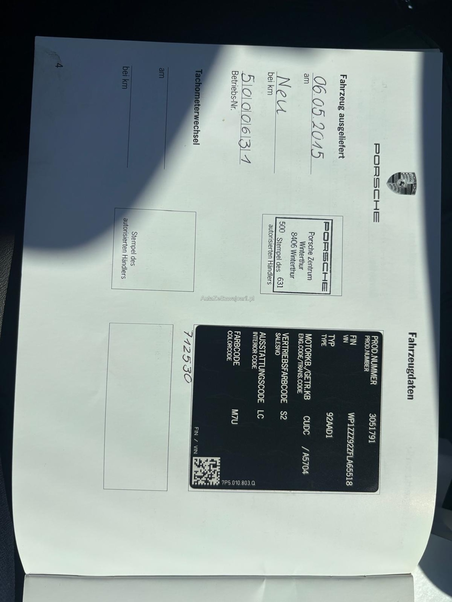 | VIN | WP1XXX |