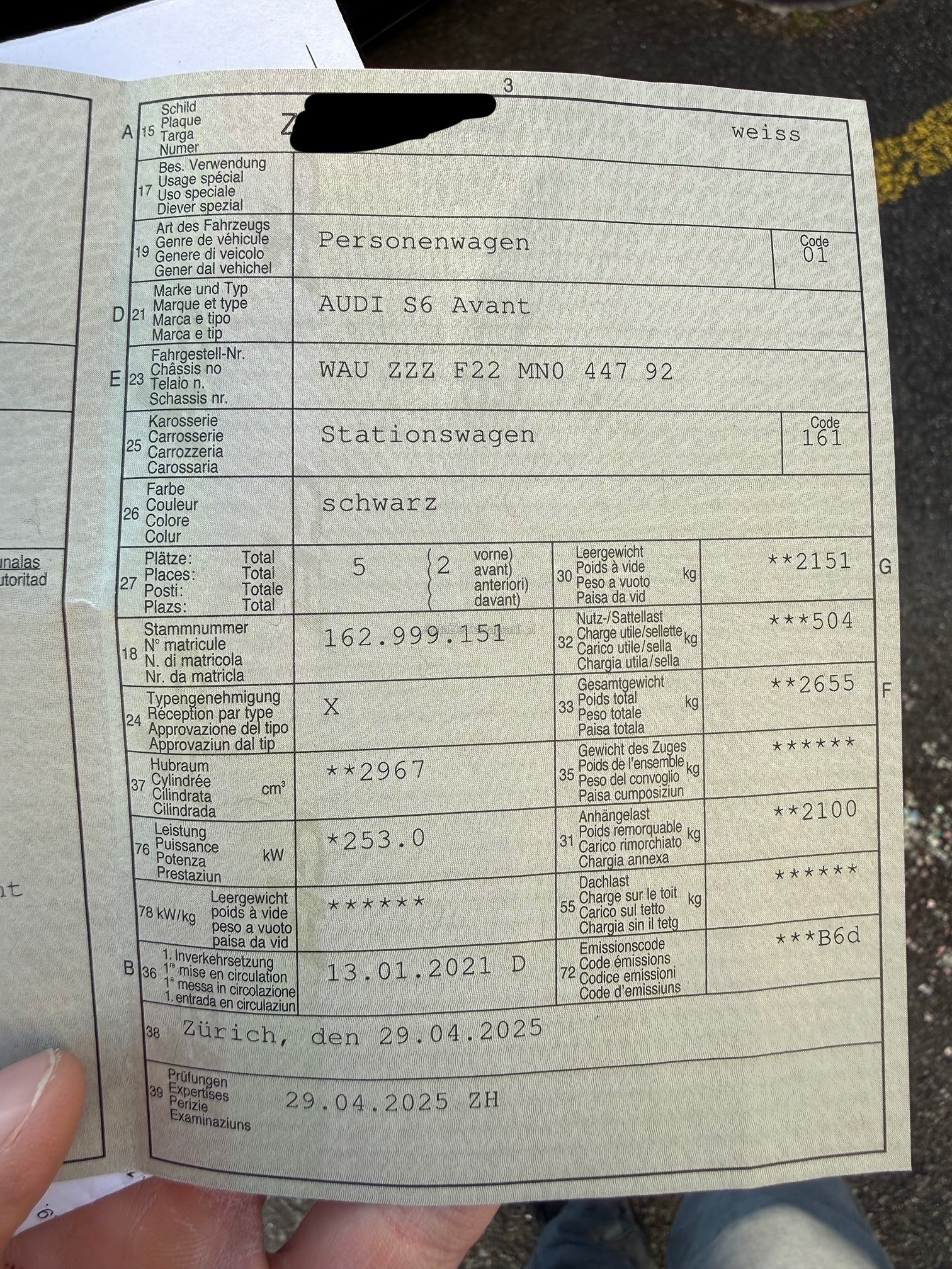 | Kommentar | Audi S6 Avant mit MFK im April 2025, Service im Februar 2026. Kunde hat noch einen Satz 21 Zoll Sommerräder in schwarz. Profil soll noch gut sein. 2. Schlüssel vorhanden. Läuft einwandfrei, keine Störung, keine Mängel bekannt. Standheizung, 360 Grad Kamera uvm. Für sichtbare oder nicht sichtbare Mängel wird am Ende der Auktion nicht gehaftet. Wir testen und prüfen nicht alle Funktionen am Fahrzeug. Das Risiko liegt somit vollumfänglich beim Käufer. Nach erhalt des Zuschlags, gibt es keine Nachverhandlung, auch wenn nicht deklarierte Mängel zum Vorschein kommen. Um Missverständnisse vorzubeugen, schauen sie sich das Objekt vor Ort an. Ab Platz ohne Garantie oder Gewährleistung, Wandelung und Minderung werden wegbedungen. Abholung innerhalb 5 Tagen |
