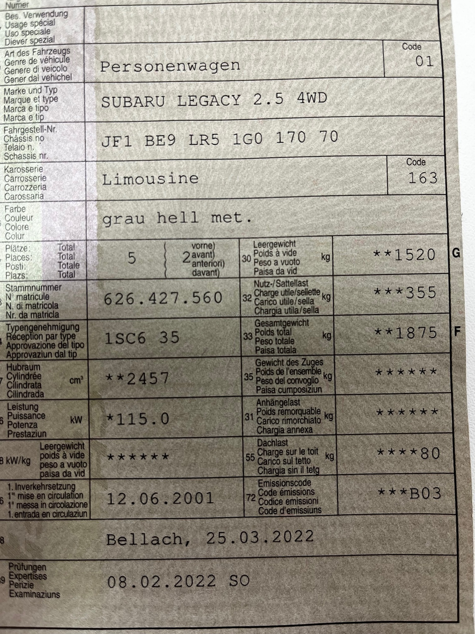 | Kommentar | -Zylinderkopfdichtungen haben Oelverlust. -Auspuff undicht -Karosserie hat div. Kratzer & Beulen etc. (gemäss Bilder) -Frontscheibe hat Steinschlag Keine Garantie oder Nachverhandlungen. |