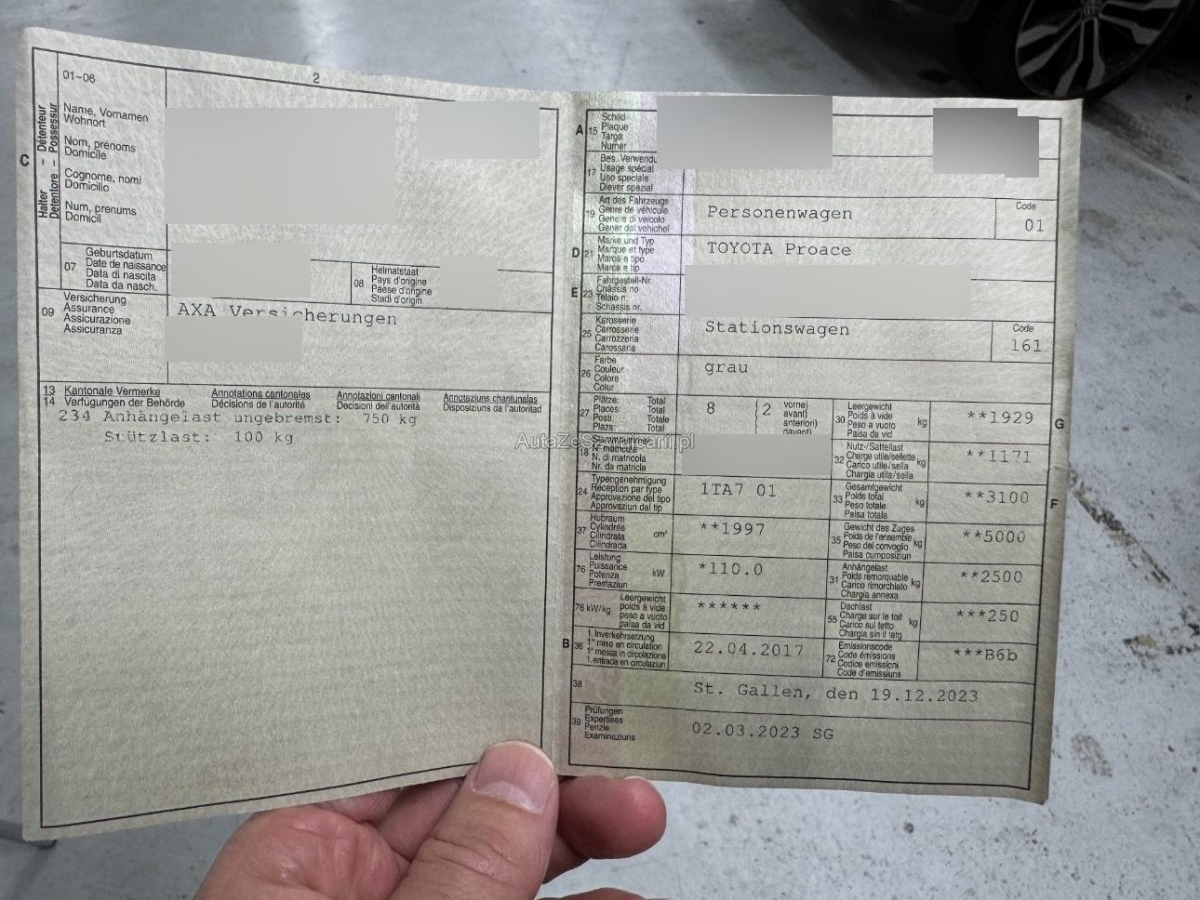 | Fahrzeugausweis | Vorhanden |