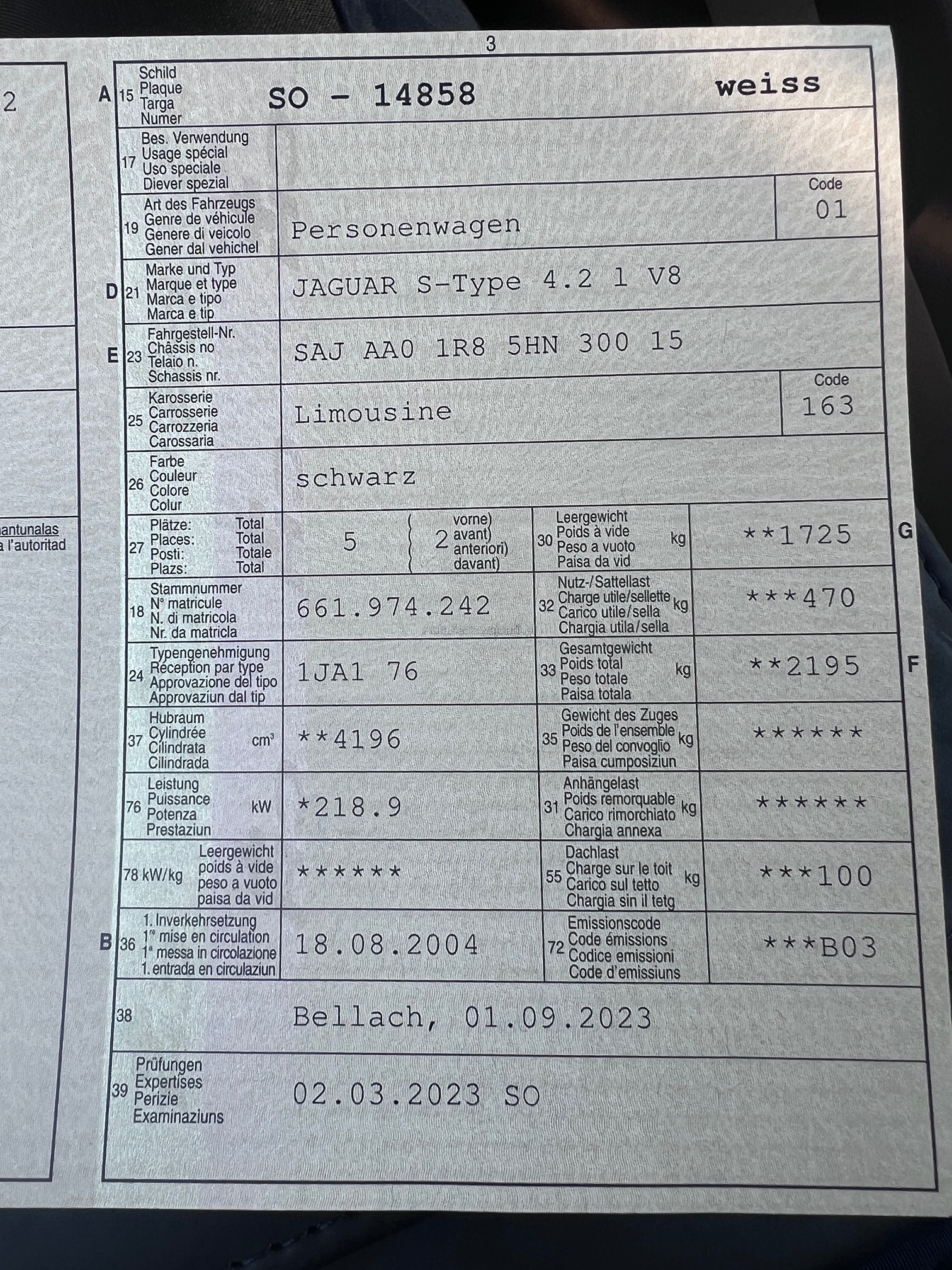 | VIN | SAJXXX |