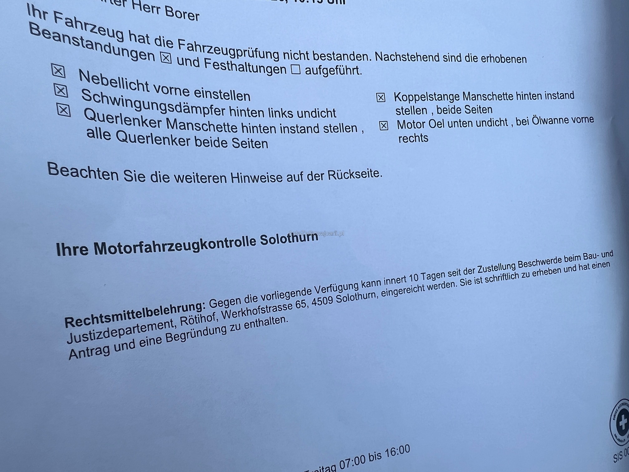 | Rost am Fahrzeug | No |