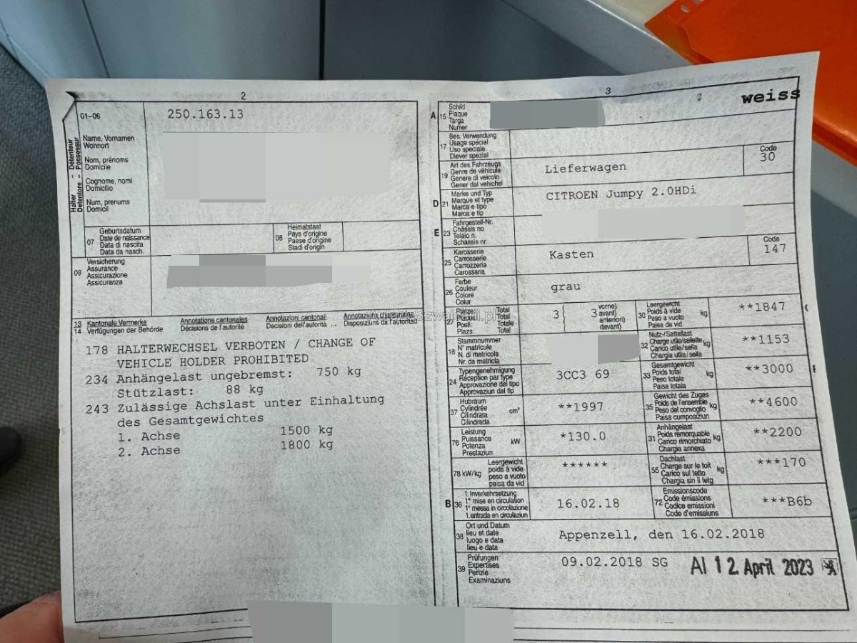 | Fahrzeugausweis | Vorhanden |