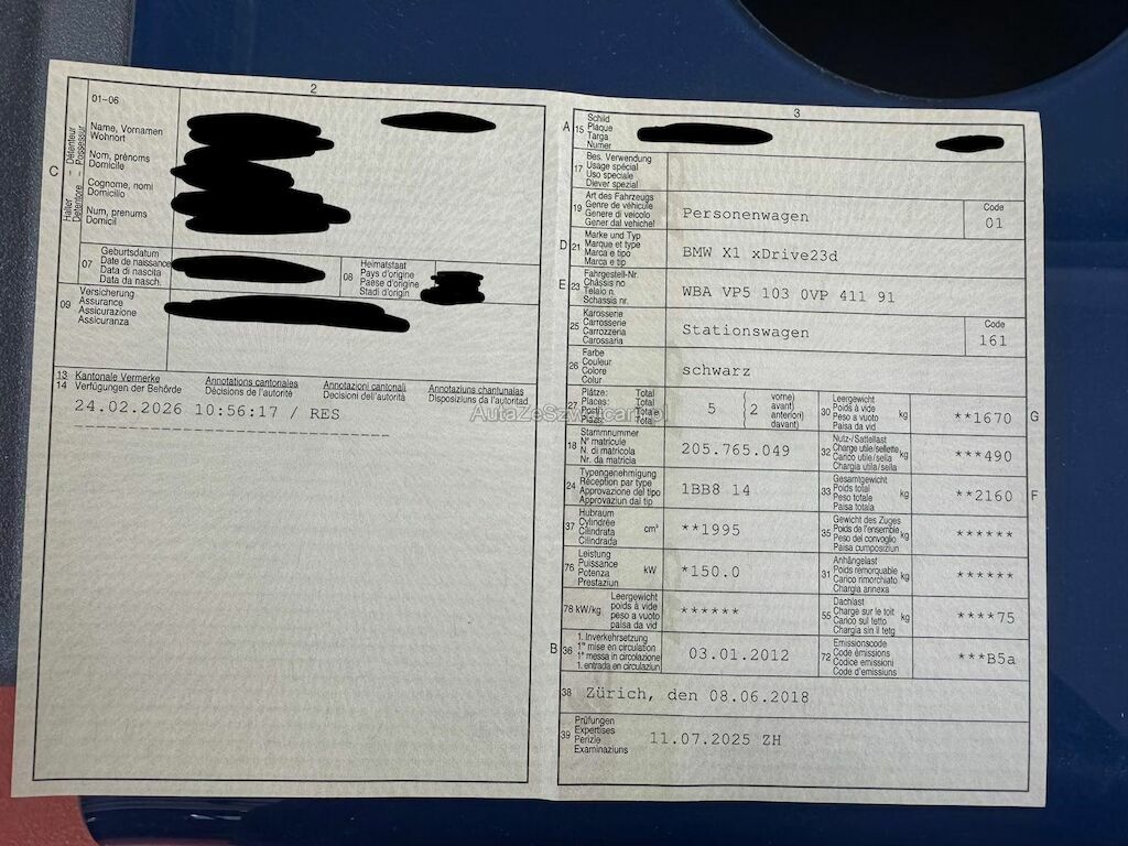 | Information | Keine technische Prüfung (Werkstatttest) vorgenommen Diverse Schäden an Karosserie/Lack. Fahrzeug ab Platz, ohne Garantie und Aufbereitung. Keine Gewähr auf die Angaben der Sonder- und Serienausstattung / keine mechanische Prüfung. Fahrzeug wurde unzerlegt expertisiert / keine Haftung für allfällige, nach Demontage bekanntwerdenden Mängel. Fahrzeugbereifung und Ausstattung gemäss Fotos / Fahrzeugkauf auf eigenes Risiko ab Platz ohne Nachwährschaft. - Diverse Dellen und Kratzer am gesamten Fahrzeug - Stossstange vorne ersetzten - Rechts hinten Tür verkratzt und beule - Radlaufband lackieren - Partikelfilter musste nicht durchgeführt werden Grund wegem alter |