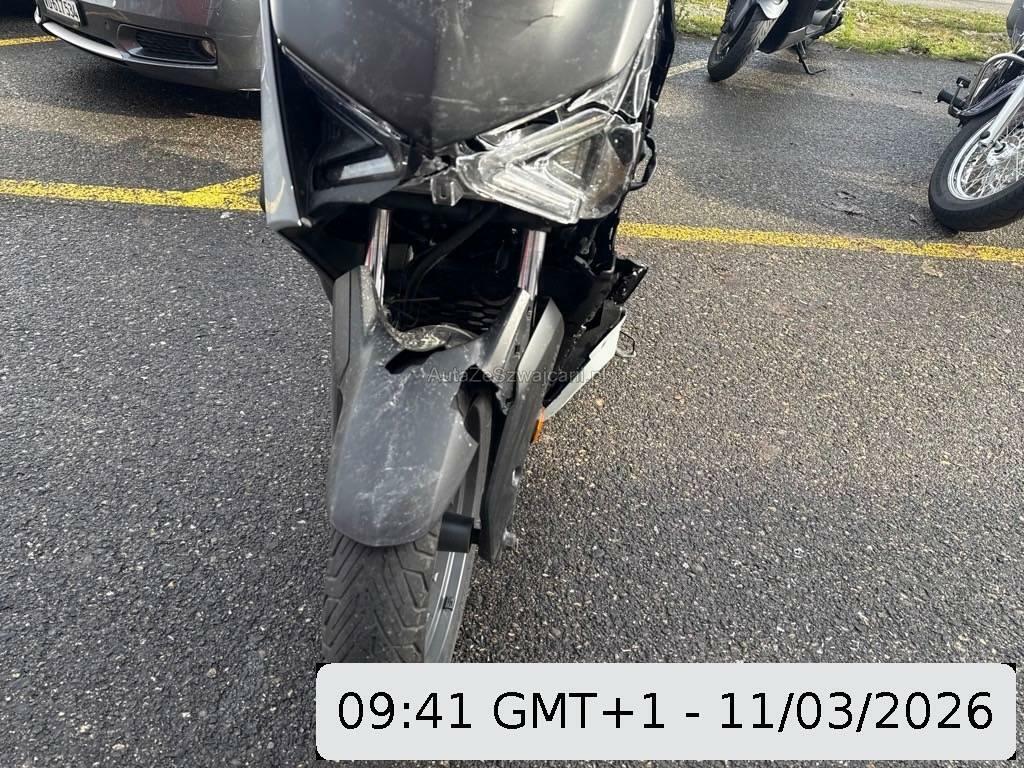 | Beschädigungen | Aussenspiegel links, Aussenspiegel rechts, Front, Fussraster links, Fussraster rechts, Gabelholm, Griff links, Griff rechts, Heck, Heckverkleidung, Kühler, Lenker, Scheinwerfer, Schutzblech vorne, Seite links, Seite rechts, Sitz, Verschalungen links, Verschalungen rechts, Verschalungen vorne, Windschutzscheibe |